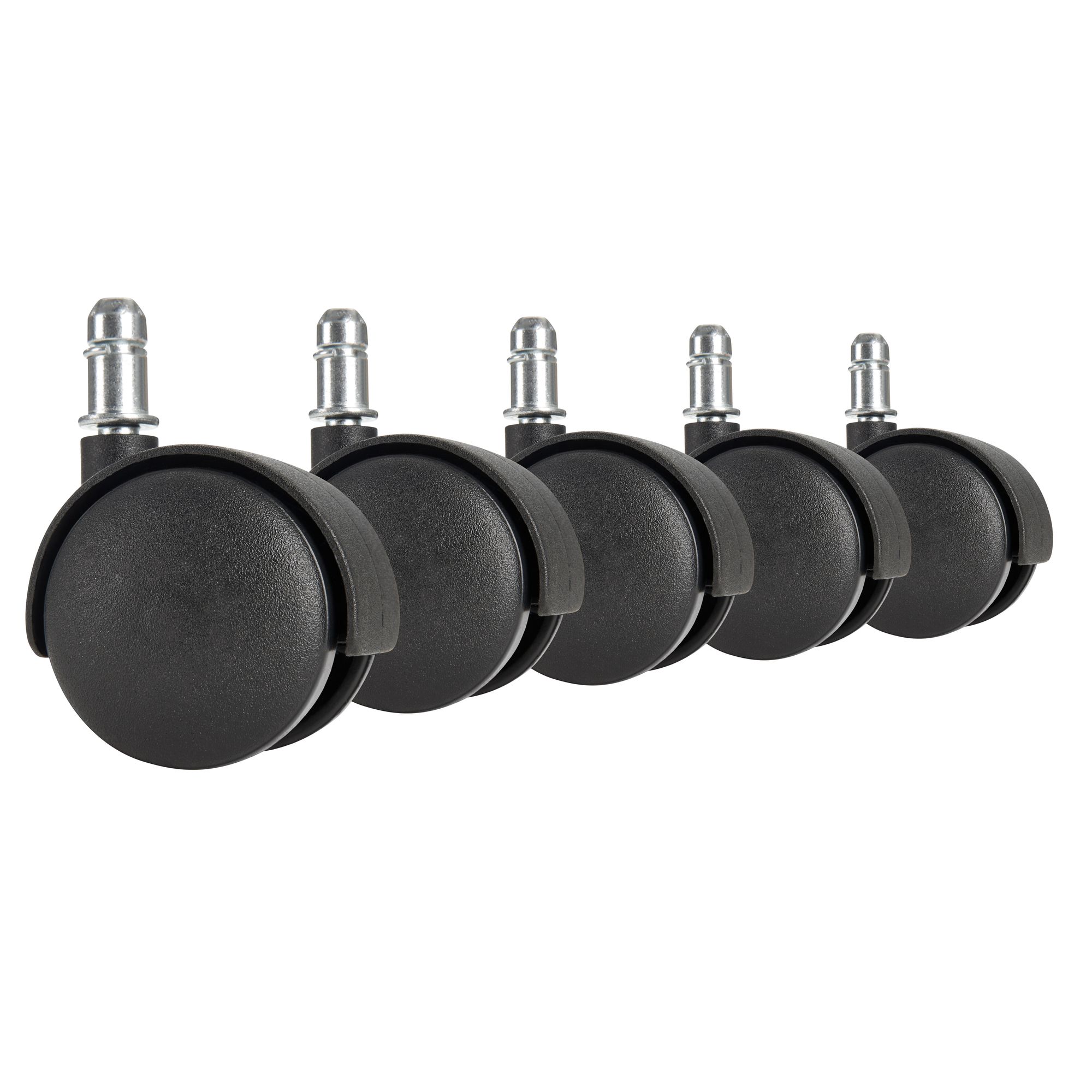 AMSTYLE 5er Set leichtgängige Hartbodenrollen für Bürostuhl 11 mm Stift / Durchmesser 50 mm | Schwar