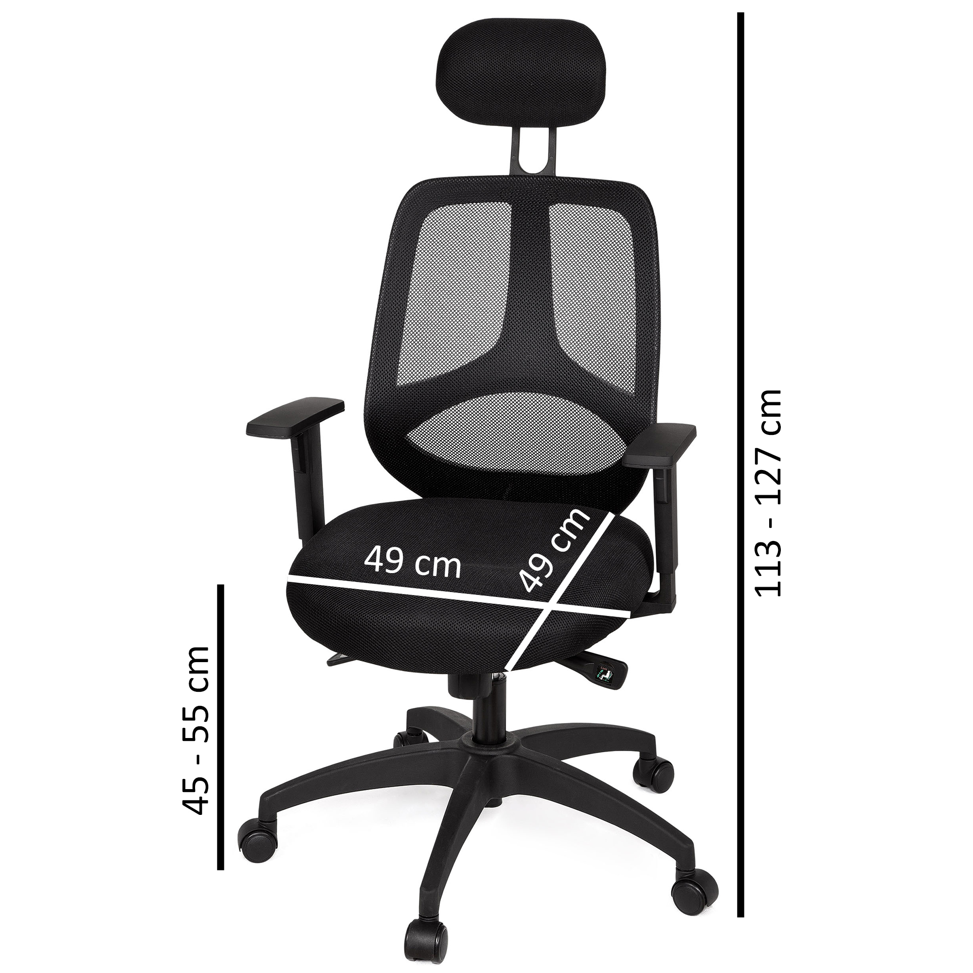 Schreibtischstuhl Armlehne schwarz Chefsessel 120 kg Drehstuhl Kopfstütze