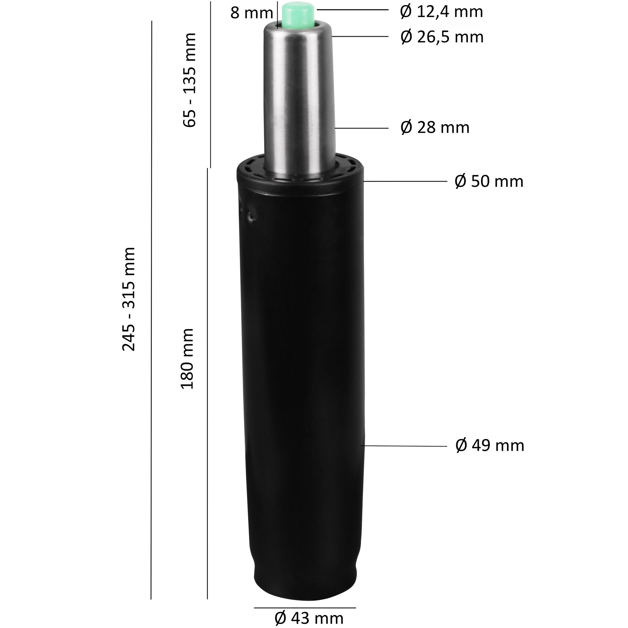 AMSTYLE® Gasdruckfeder SPM1.850 schwarz Metall bis 180 kg 245 - 315 mm | Gasfeder Höhenverstellung 7 cm | Gas-Lift Gasdruckdämpfer für Stühle