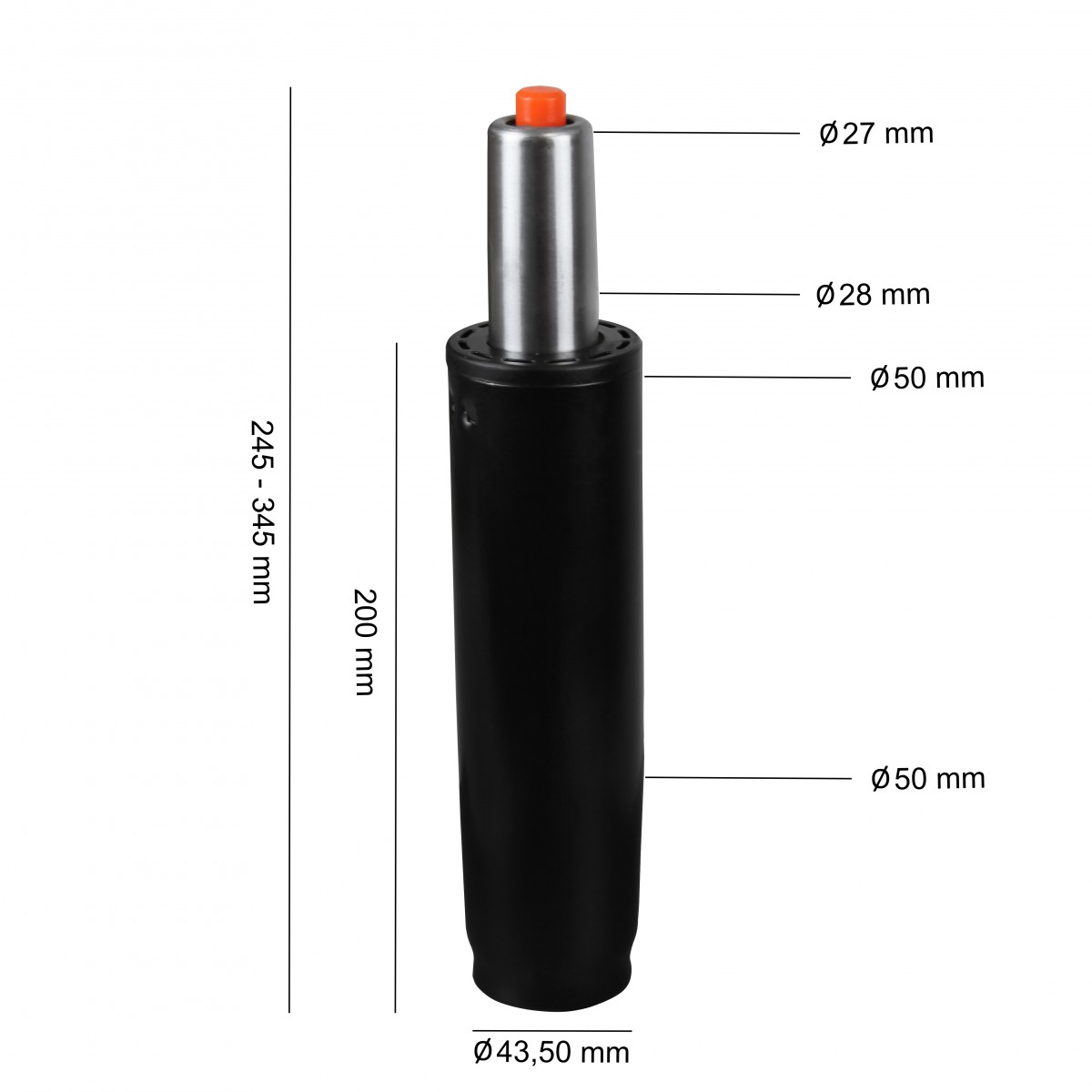 Amstyle ® Gasdruckfeder schwarz Metall bis 180 kg 245 - 345 mm | Gasfeder Höhenverstellung 10 cm | Gas-Lift Gasdruckdämpfer für Stühle