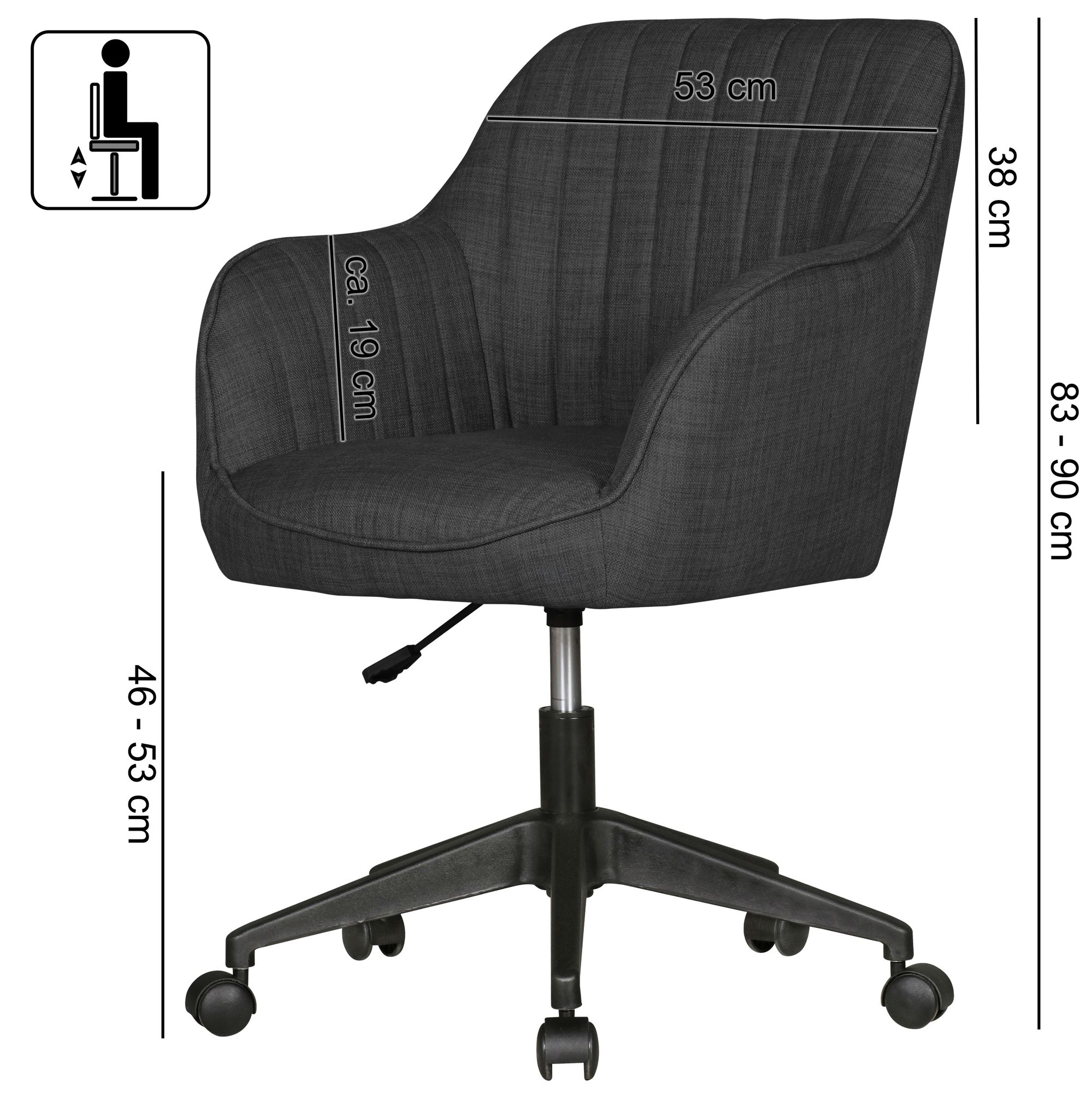 - Höhe der Armlehnen: 19 cm