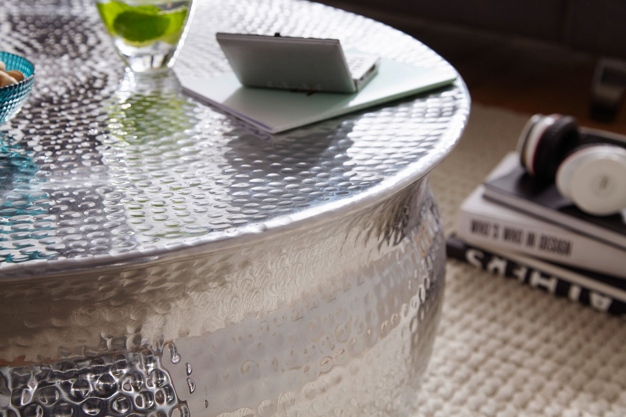 WOHNLING Couchtisch KARAM Aluminium Silber Beistelltisch orientalisch rund