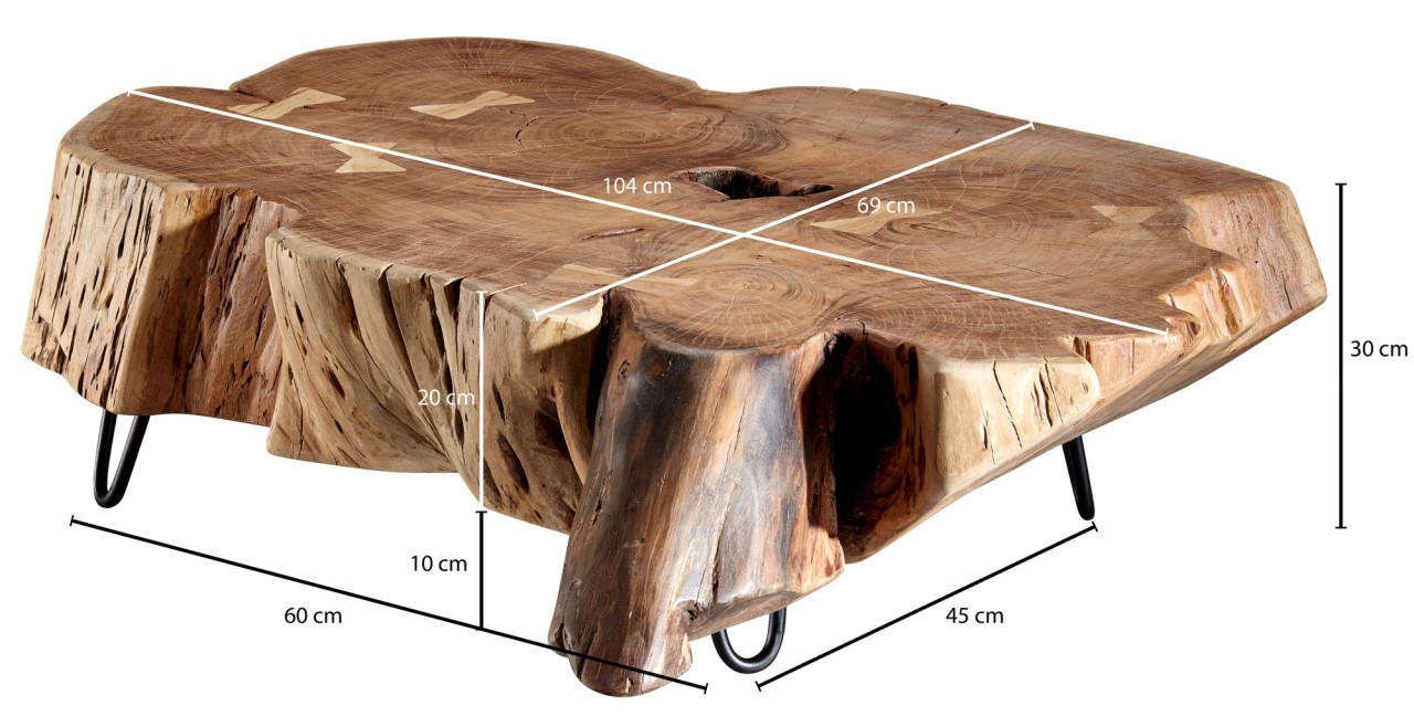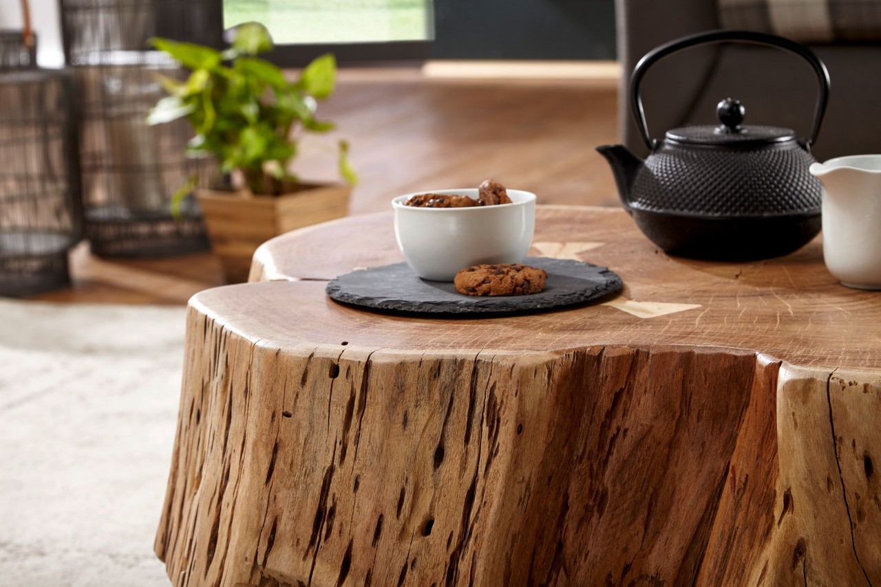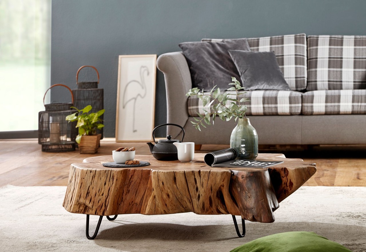 - Wuchtiger Couchtisch im umwerfenden Naturstil