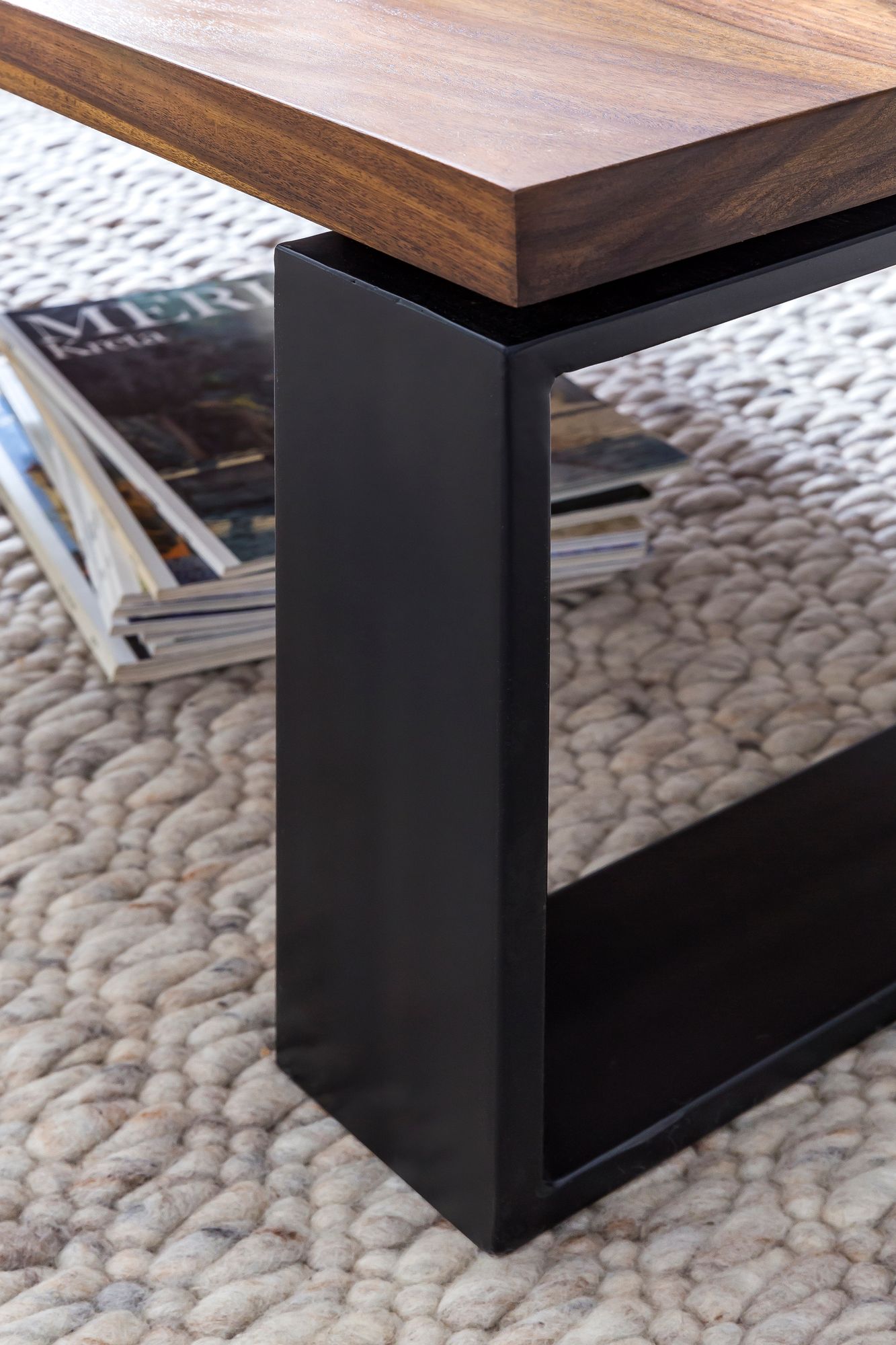 Produktinformationen "WOHNLING Couchtisch Sheesham 115x35x60 cm Massiv Holz Sofatisch mit Metallgestell"