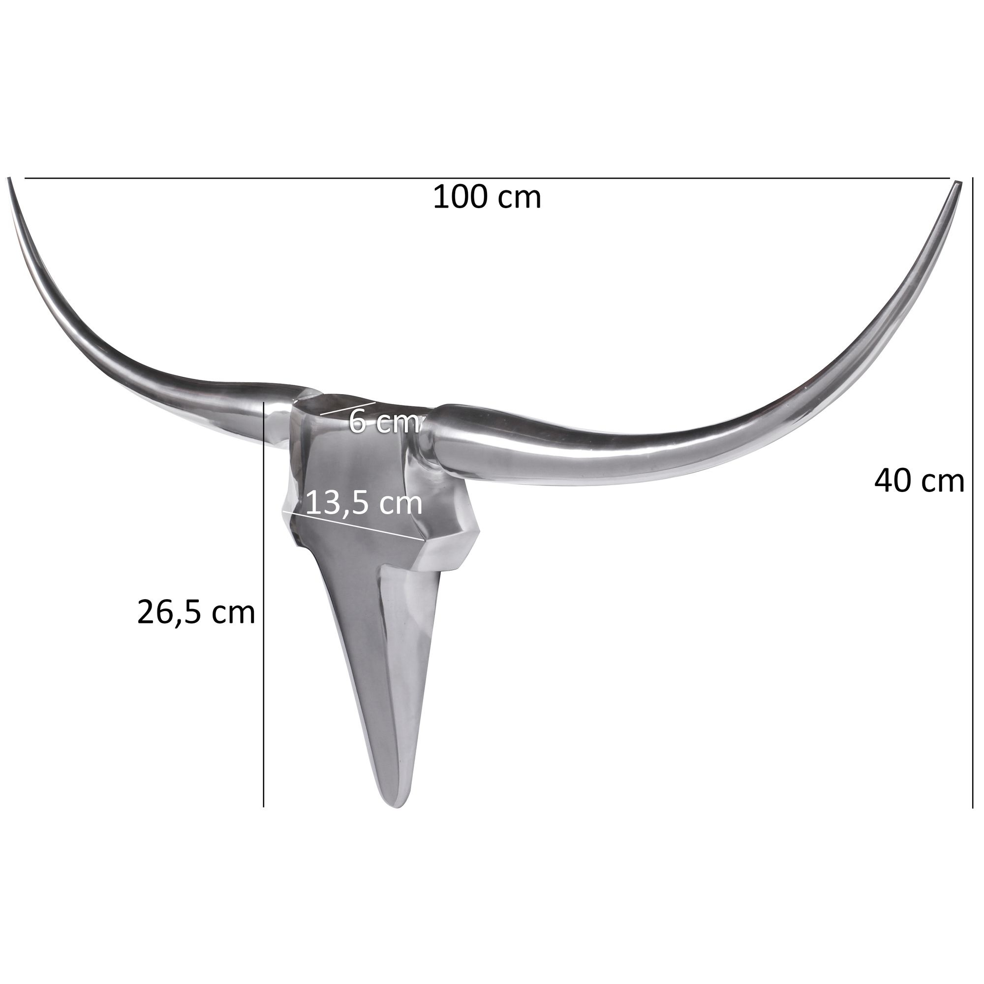 WOHNLING Deko Geweih Bull M WL1.245 Silber 100 cm Aluminium Design Hörner