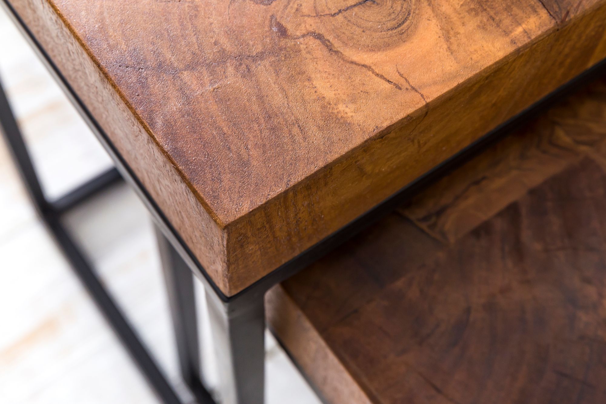 WOHNLING Design 2-Satztisch Sheesham Metall Beistelltisch 2er Set Klein | Couchtisch Set