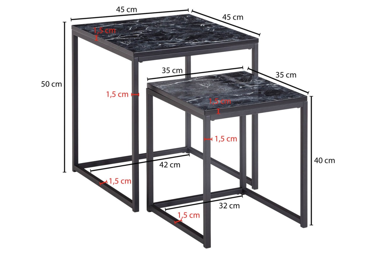 Produktinformationen "WOHNLING Design Beistelltisch 2er Set Schwarz Marmor Optik Eckig"