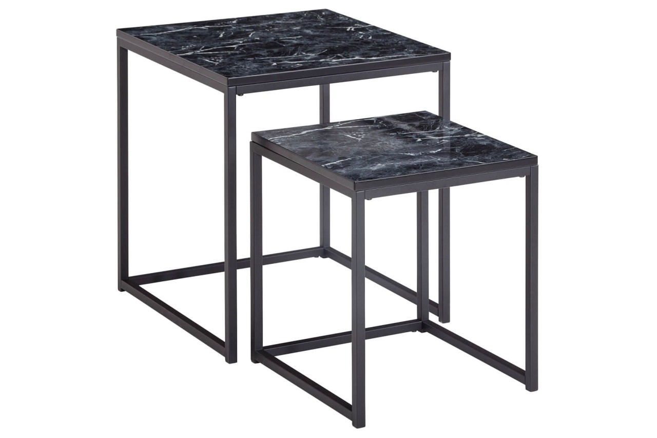 WOHNLING Design Beistelltisch WL6.250 2er Set Schwarz Marmor Optik Eckig
