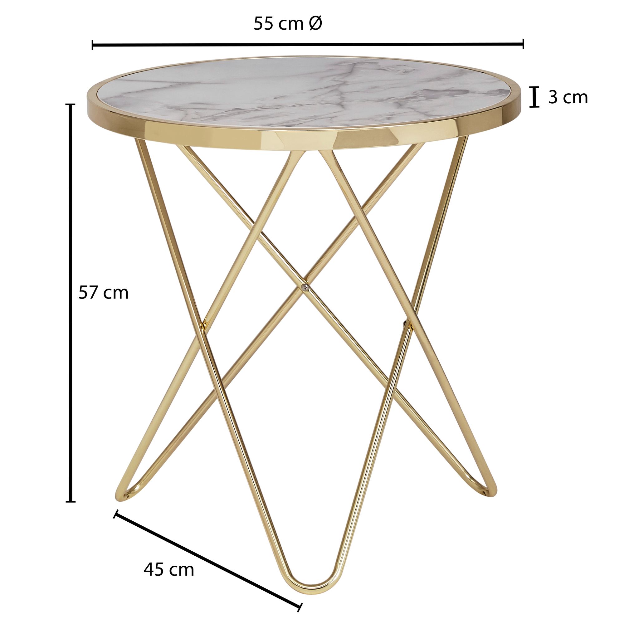 WOHNLING Design Beistelltisch Marmor Optik Weiß Rund Ø55 cm Gold Metallgestell