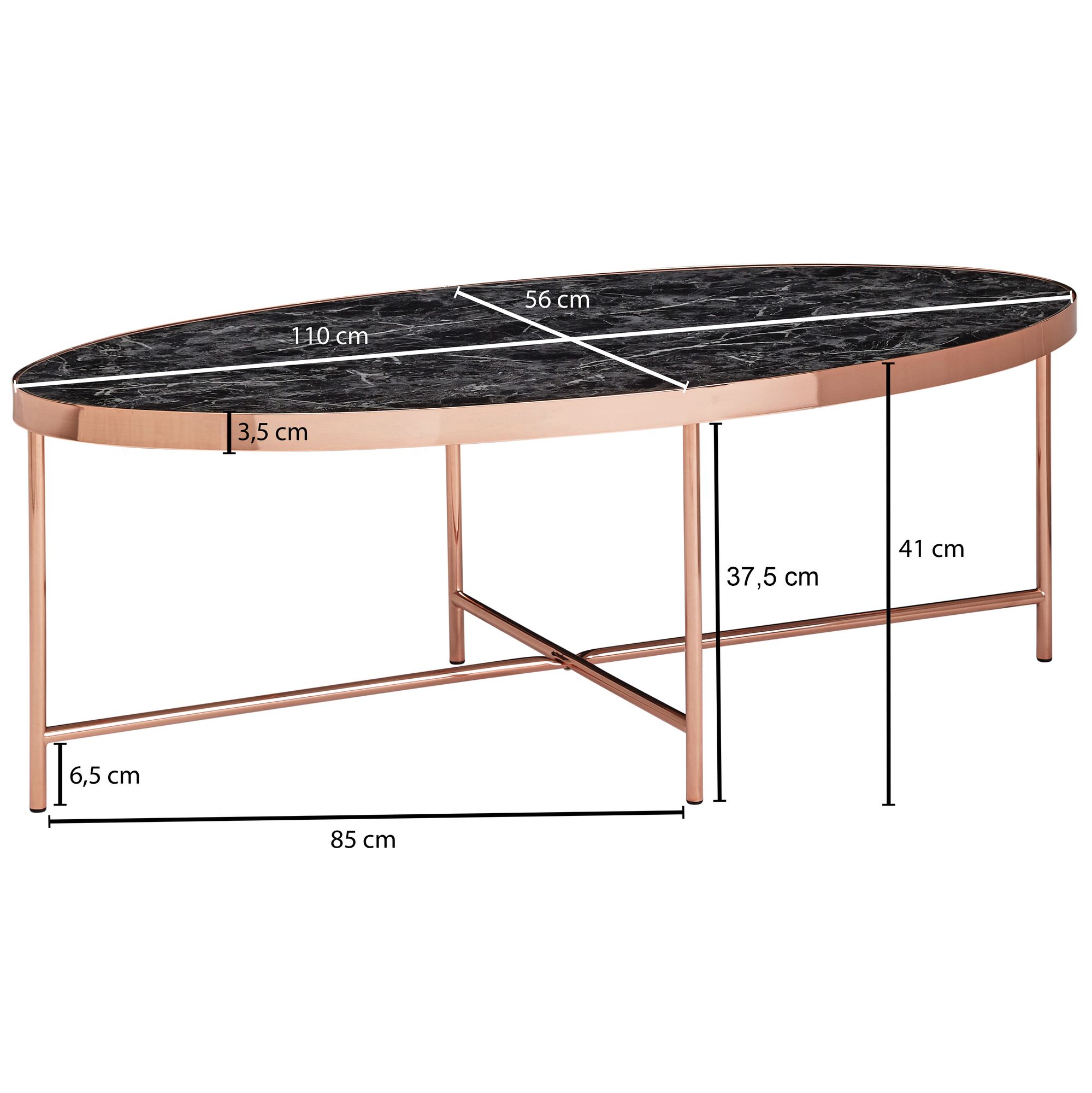 WOHNLING Design Couchtisch Marmor Optik Schwarz - Oval 110 x 56 cm mit Kupfer Metallgestell | Großer