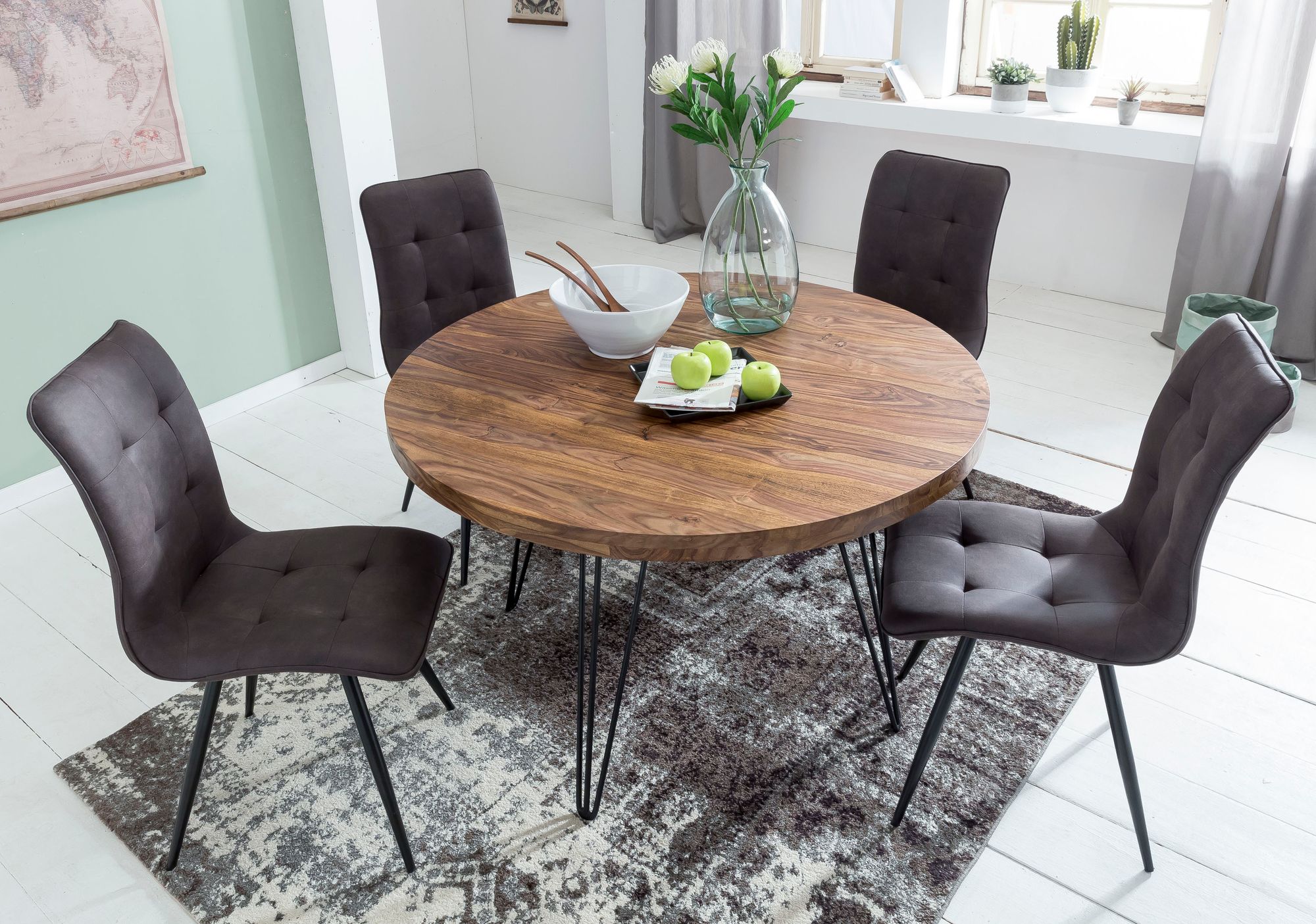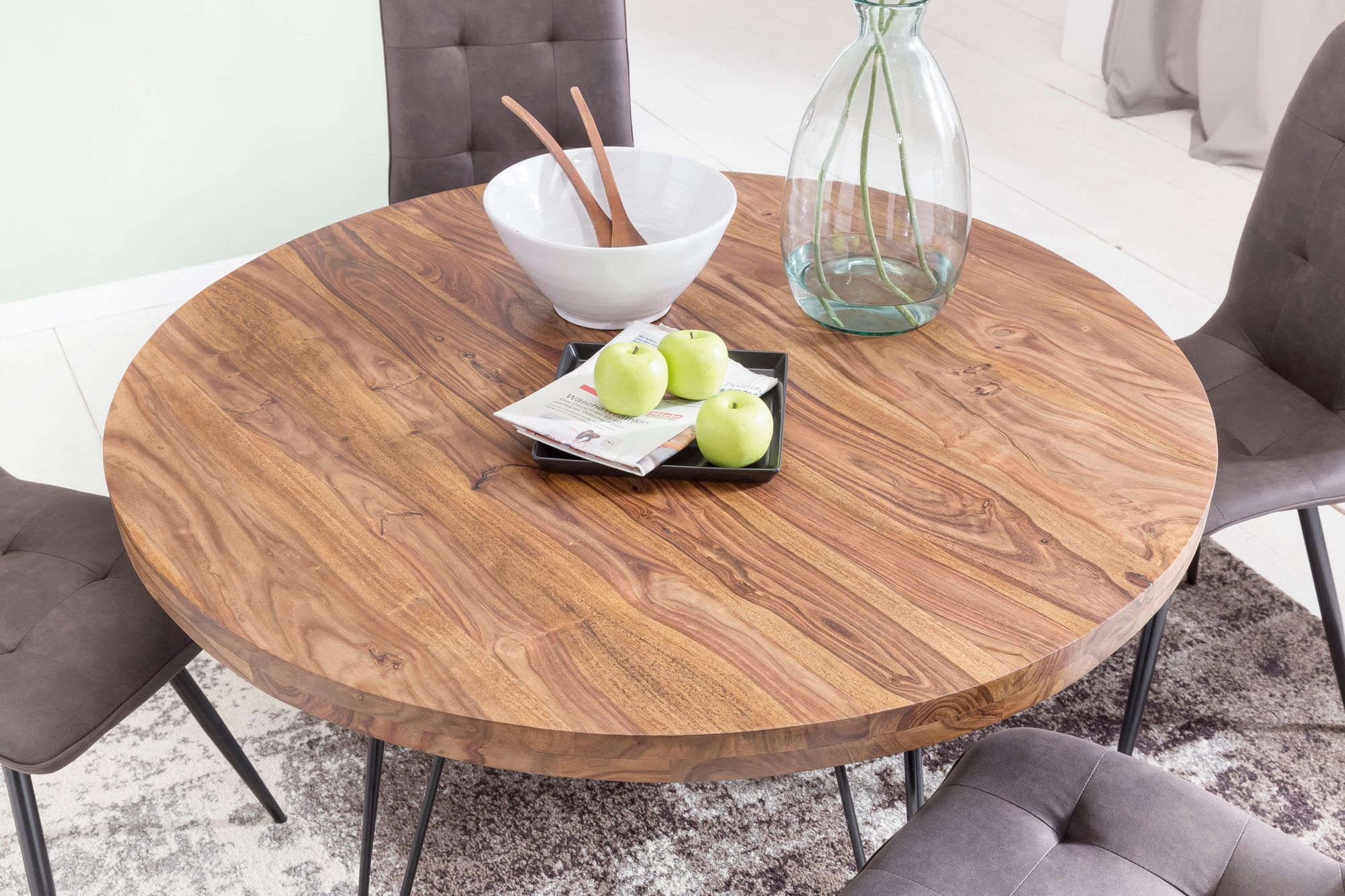 WOHNLING Design Esstisch BAGLI rund 120 x 78 cm Sheesham Massiv-Holz