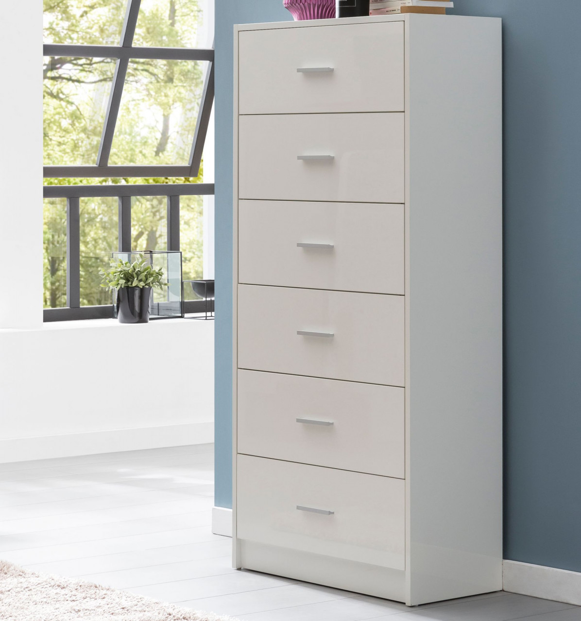 WOHNLING Design Highboard Raya WL5.863 Weiß Hochglanz 60x130x30 cm Anrichte Holz Modern | Schmale Schubladenkommode Esszimmer | Kleiner Allzweckschrank Flur | Wäschekommode Schlafzimmer