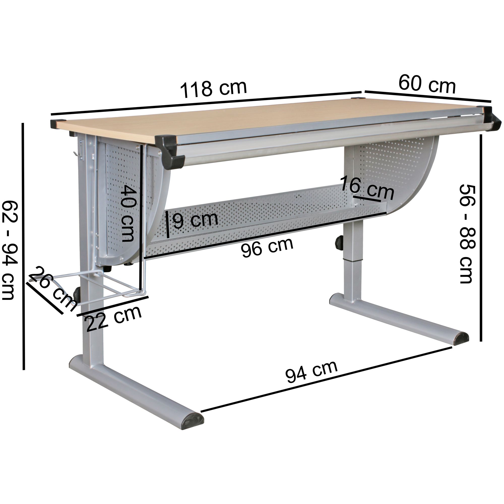 WOHNLING Design Kinderschreibtisch MAXI WL5.125 Holz 120 x 60 cm Buche | Mädchen Schülerschreibtisch neigungs-verstellbar | Schreibtisch Kinder höhenverstellbar