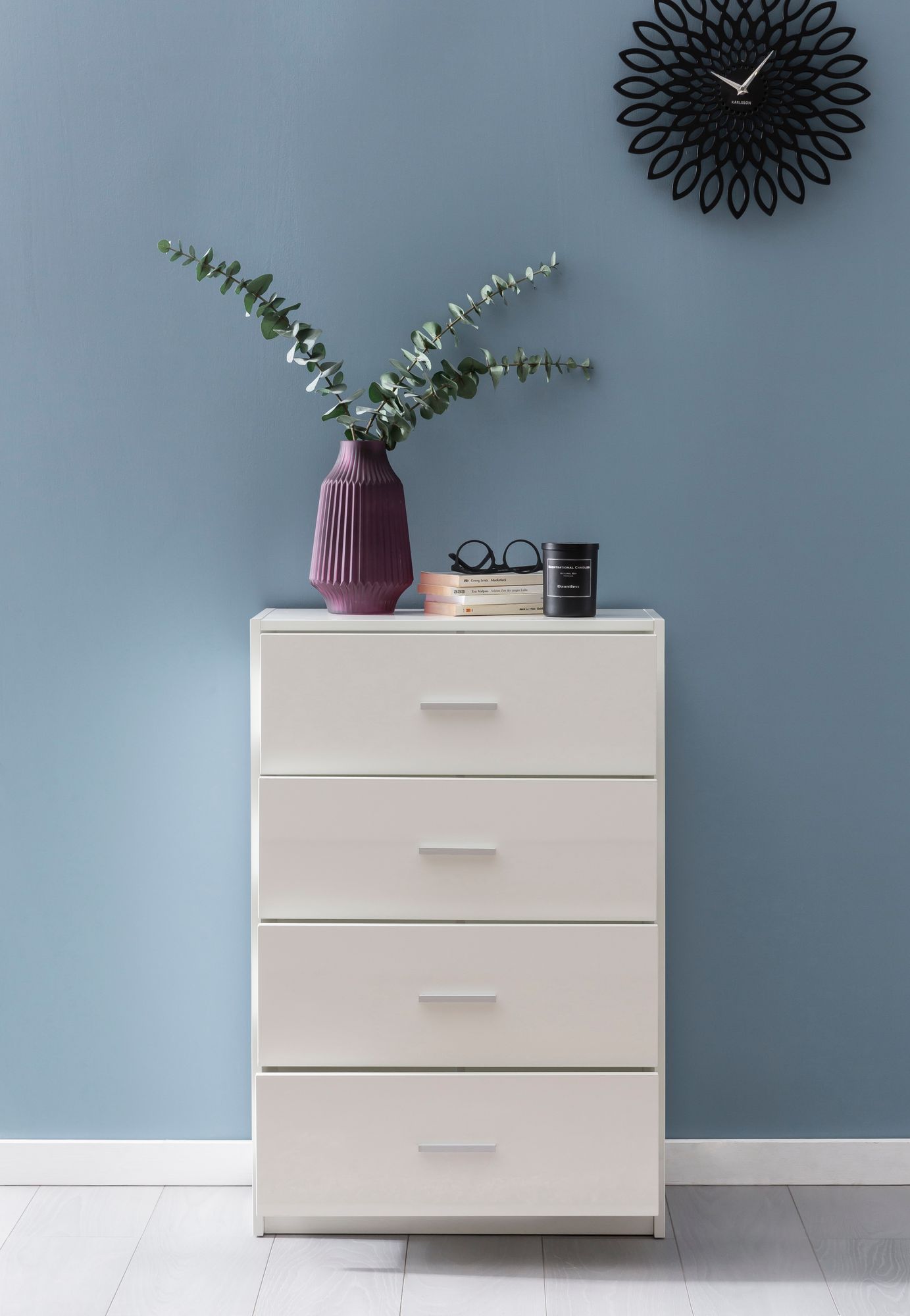 WOHNLING Design Kommode WL5.864 Weiß Hochglanz 60x90x30 cm Anrichte Holz Modern | Schmale Schubladenkommode Esszimmer | Kleiner Allzweckschrank Flur | Wäschekommode Schlafzimmer