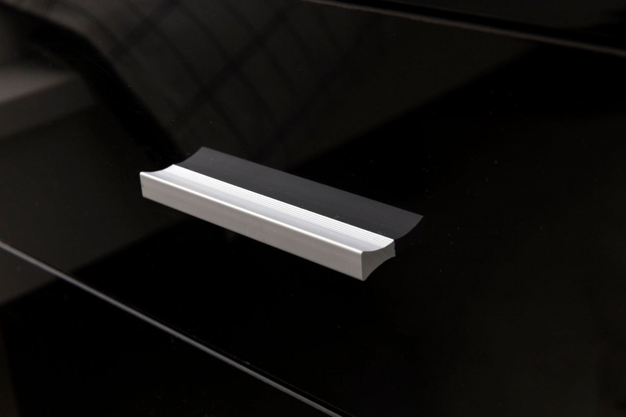 - Drei silberne Griffe zieren die Schubkästen