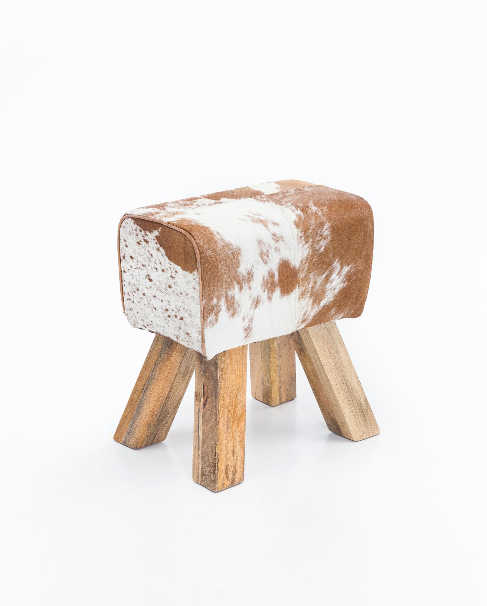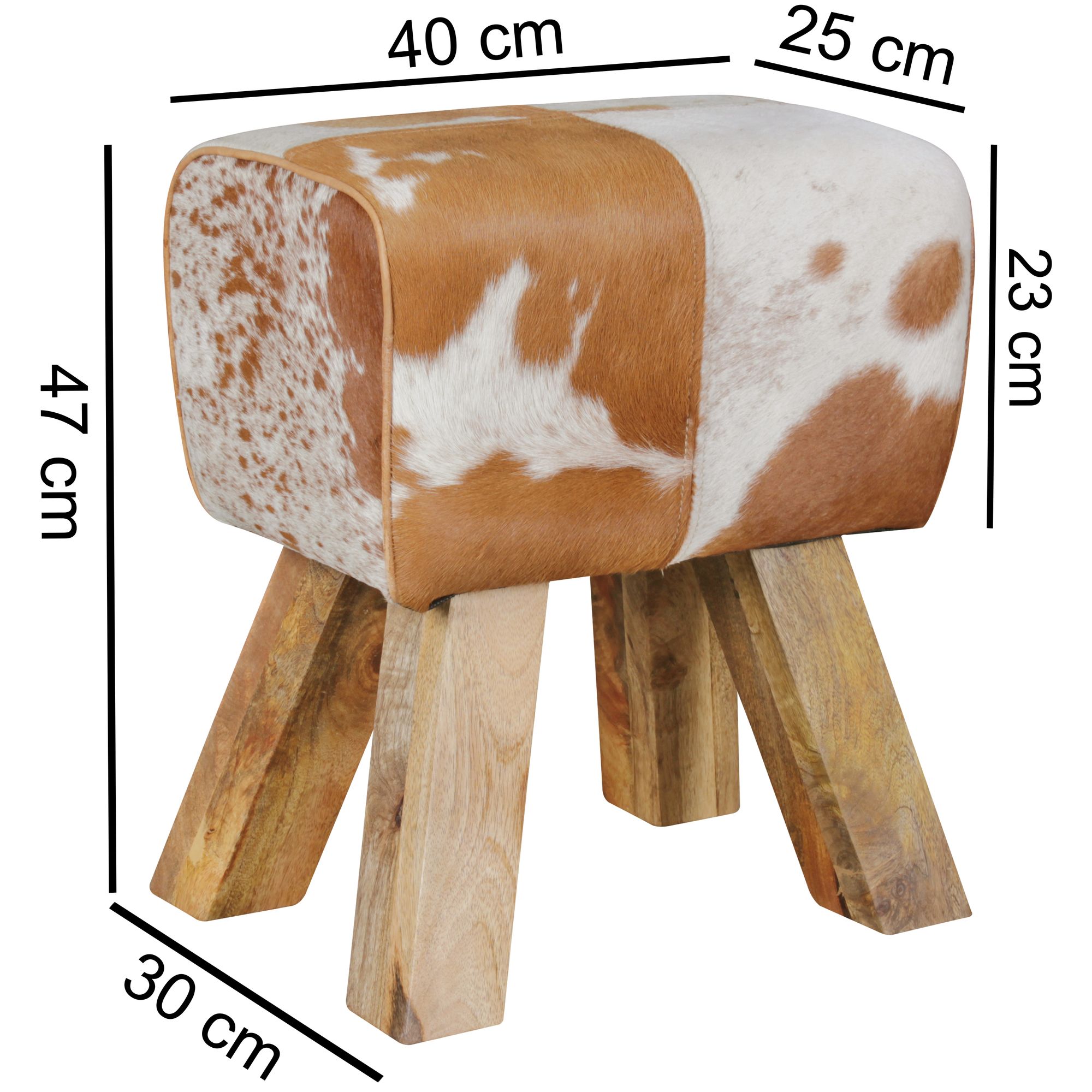 WOHNLING Design Turnbock Sitzhocker WL5.109 Ziegenfell Braun / Weiß 40 x 30 x 47 cm | Turnhocker Hocker Fellhocker Springbock | Beistellhocker Fußhocker