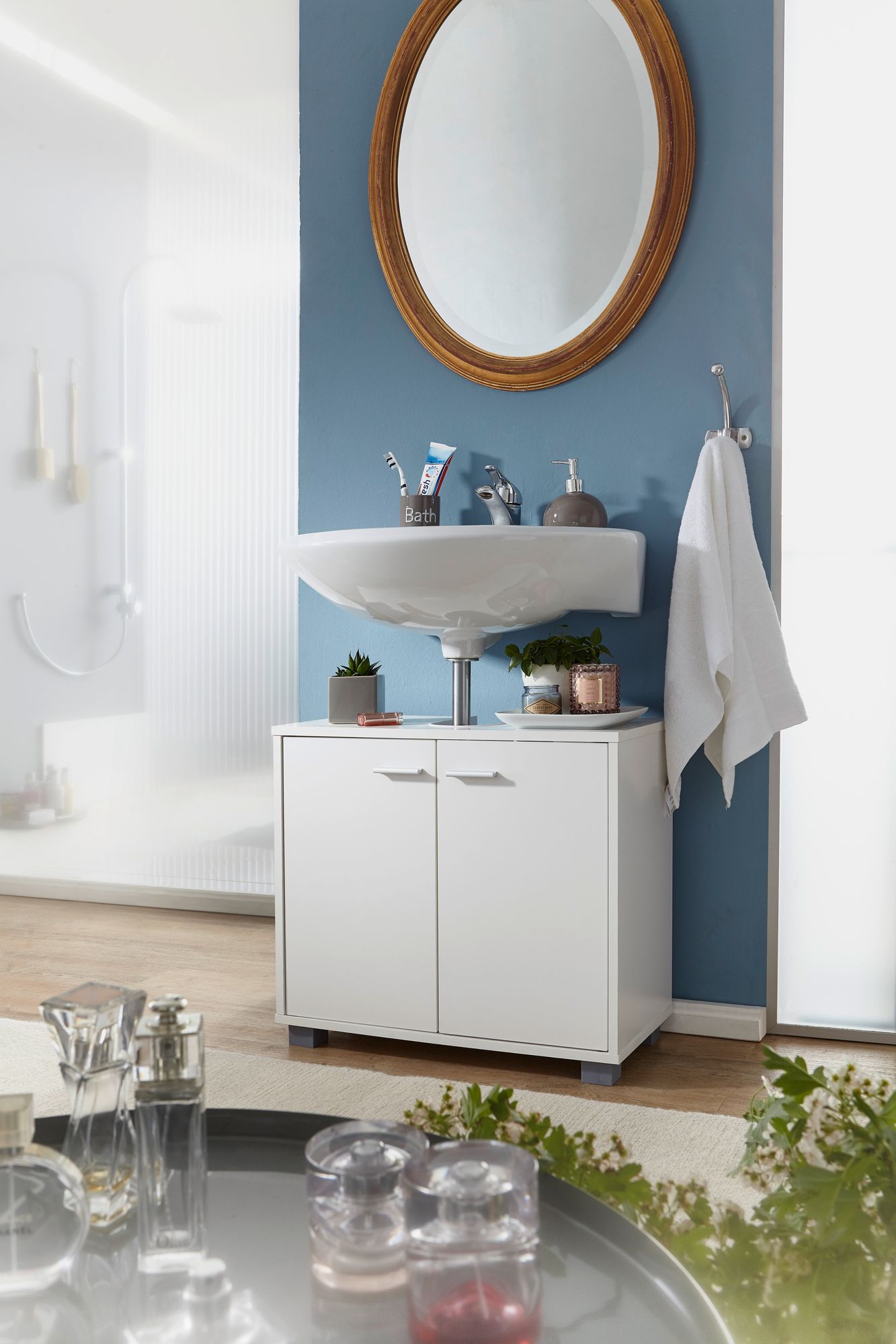 WOHNLING Design Waschbeckenunterschrank WL1.344 Badunterschrank mit 2 Türen Weiß