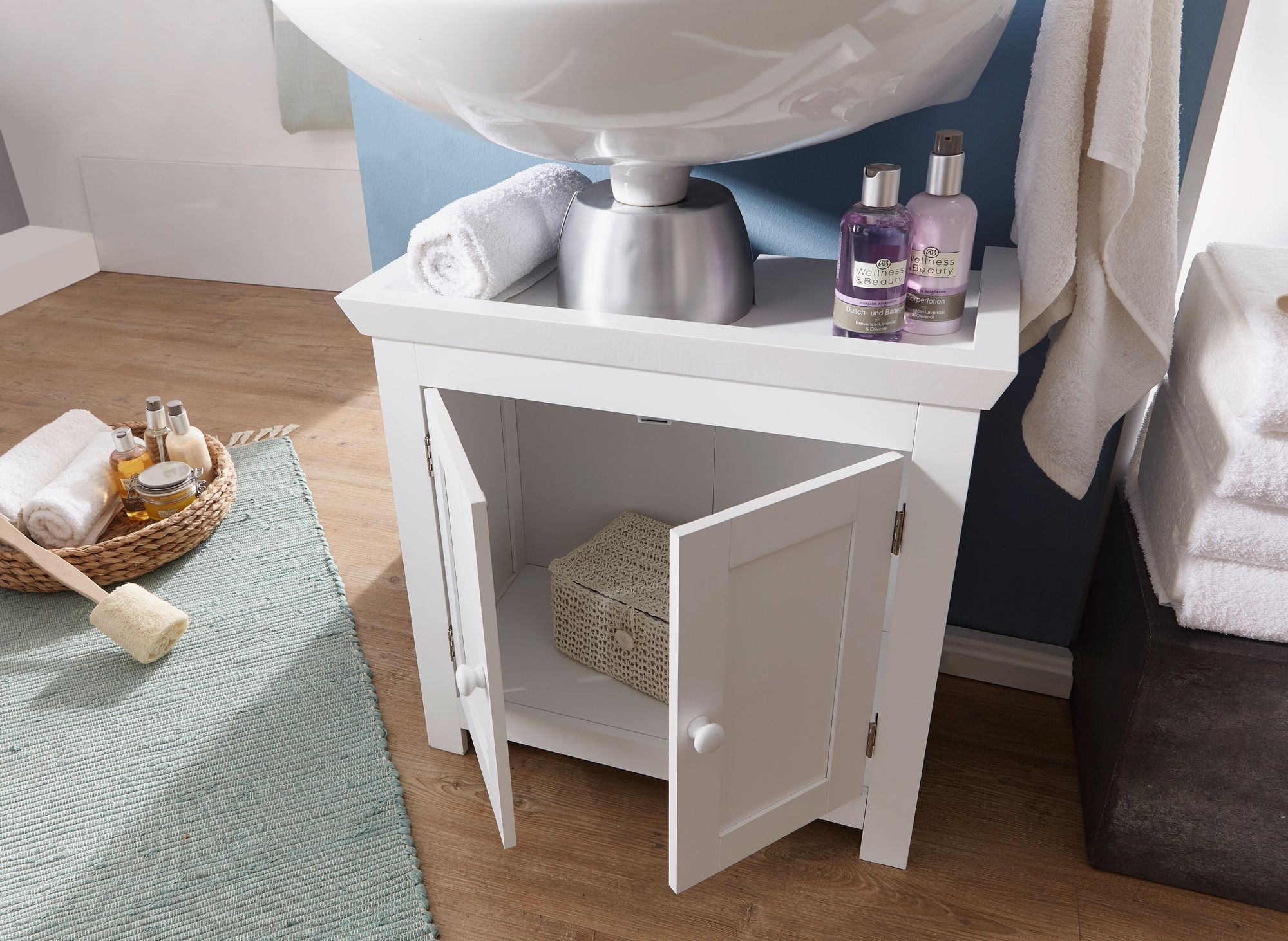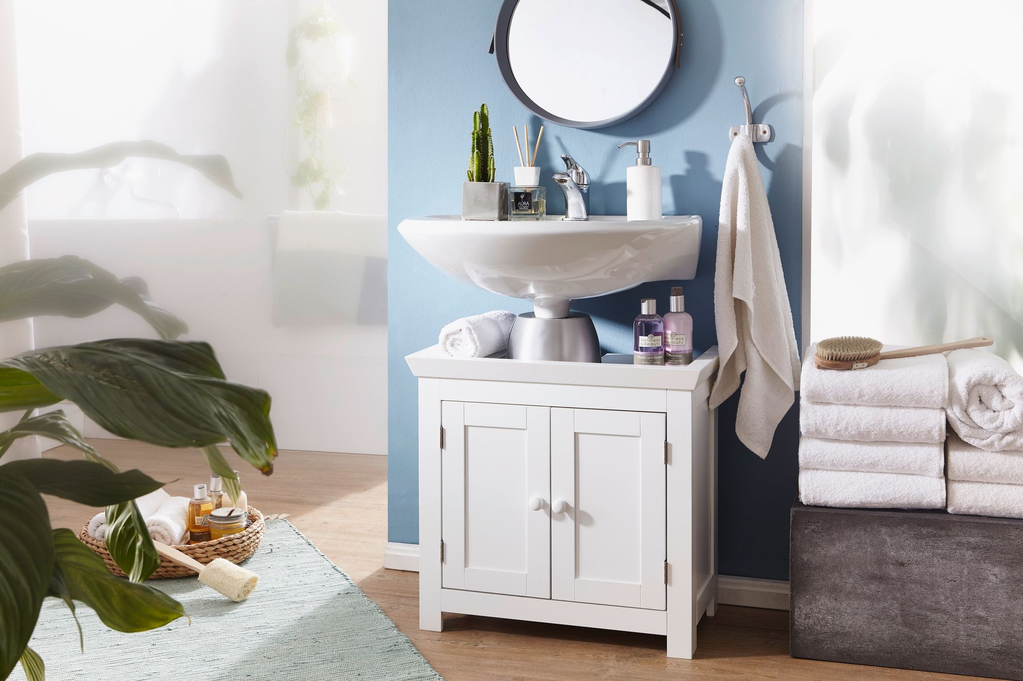 Badunterschrank mit 2 Türen Weiß | Kleiner Schrank Badezimmer 57 cm Breit