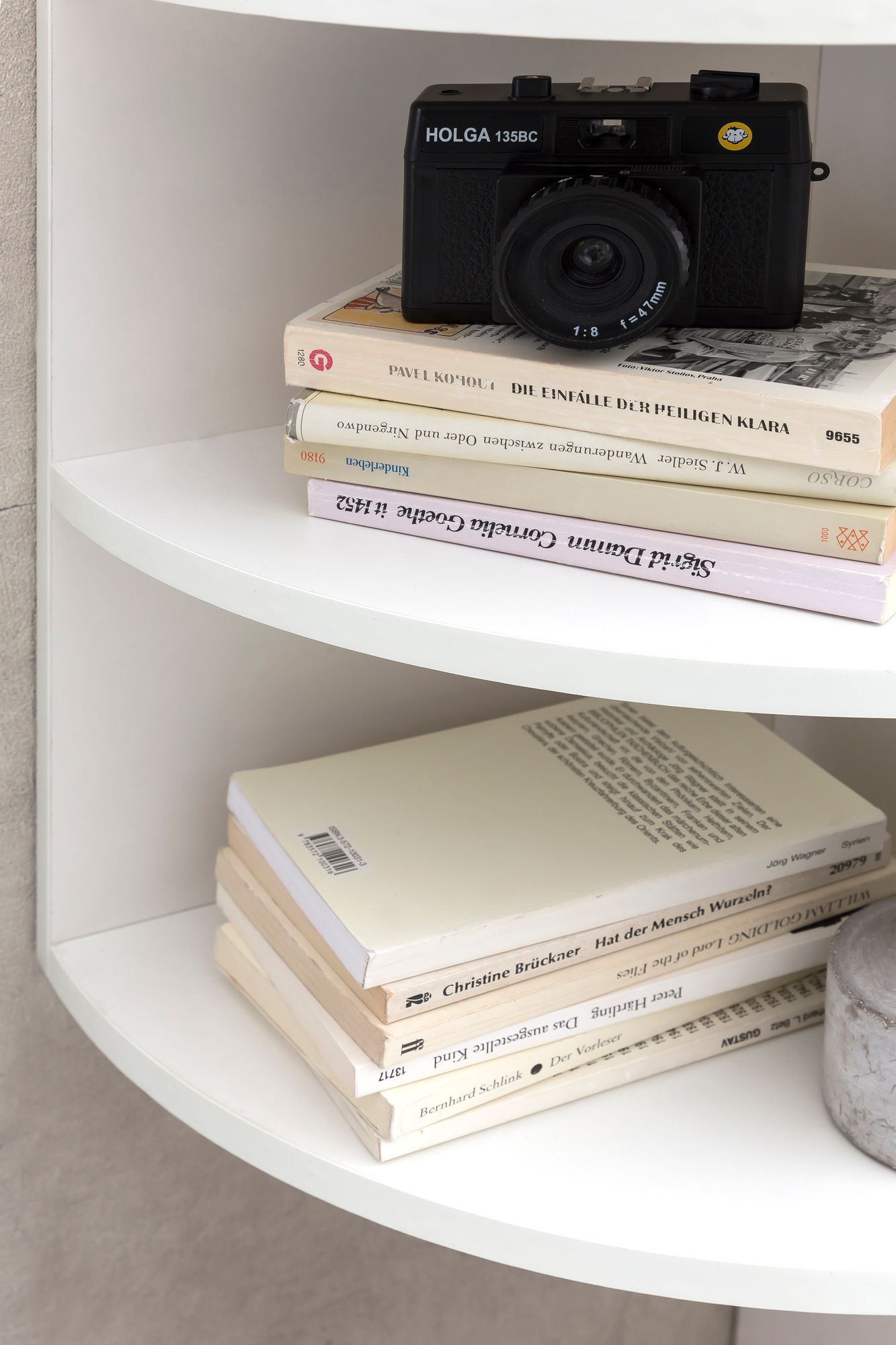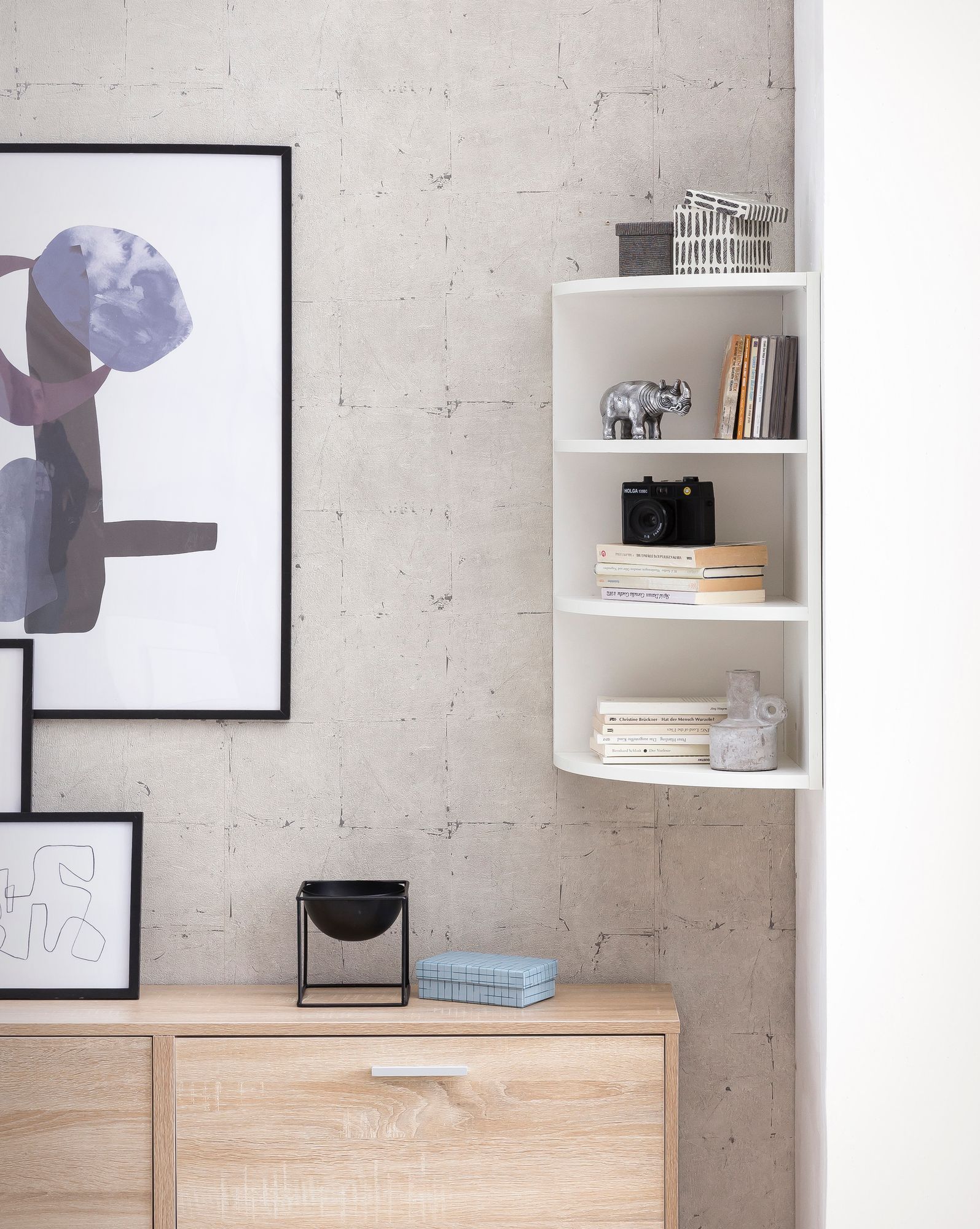 - Leichtigkeit strahlt das Hängeregal durch die runde Front aus