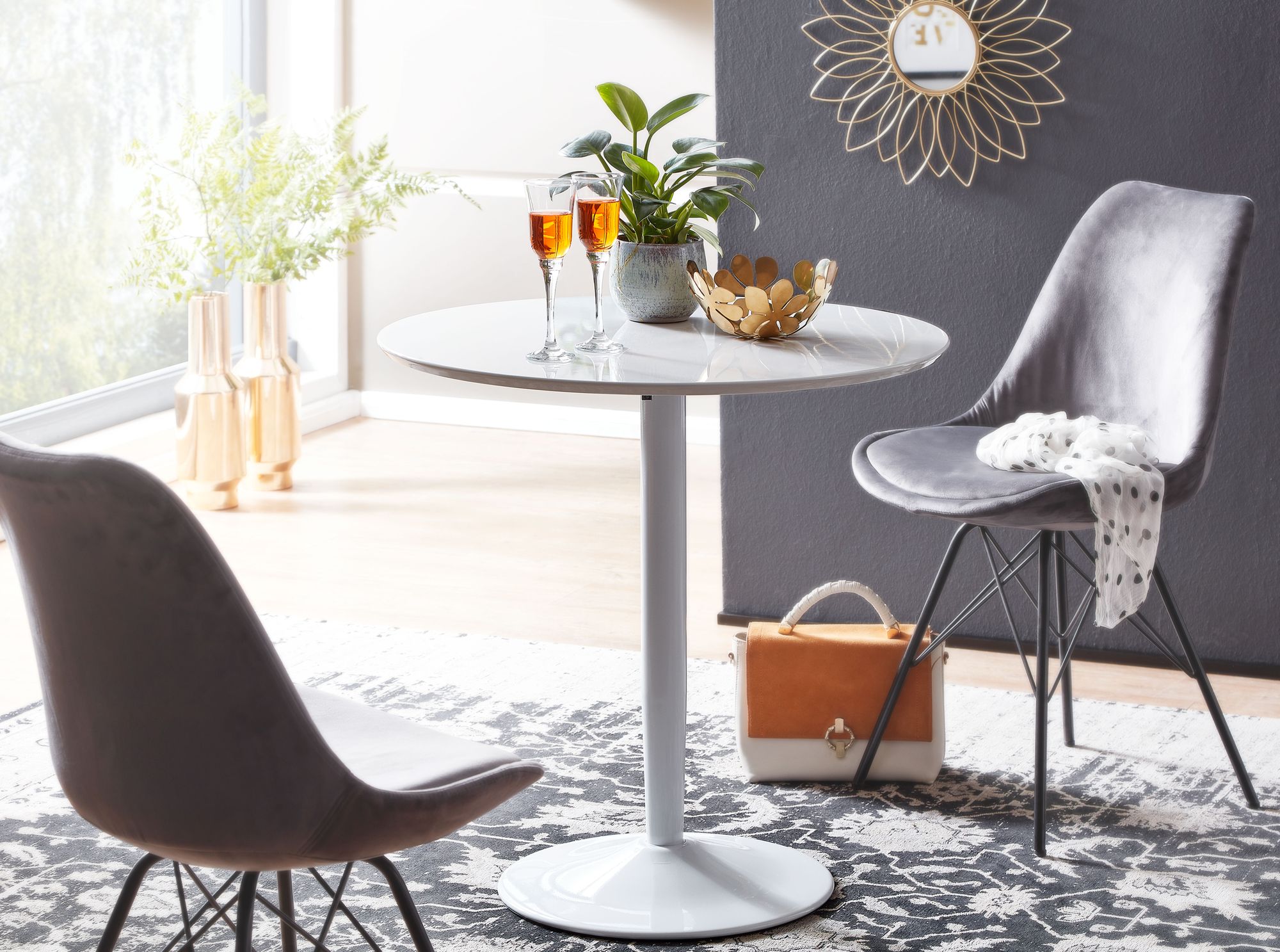 Wohnling Esstisch Rund 75x75x74 cm Kleiner Küchentisch WL6.504 Weiß Hochglanz