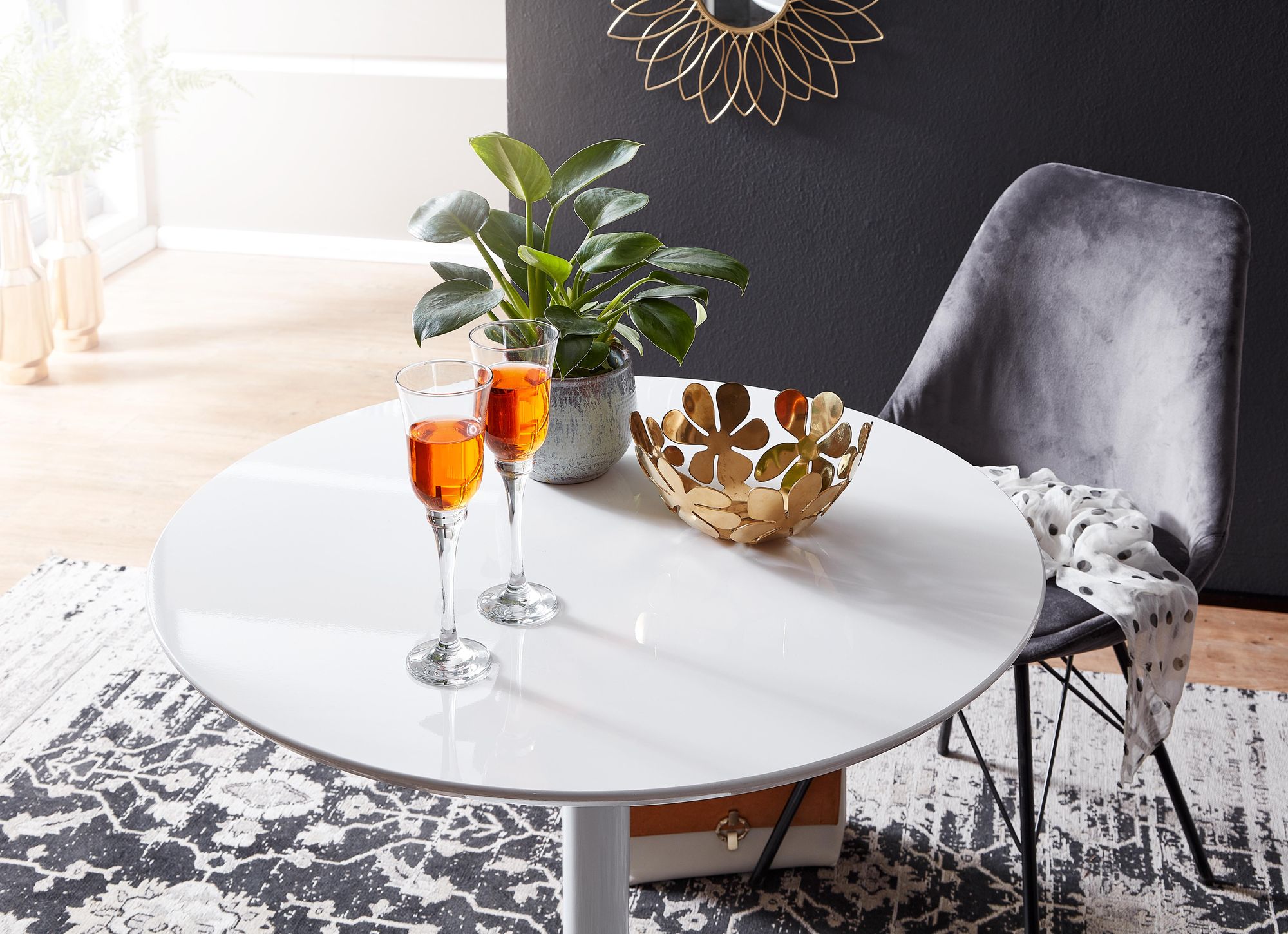 WOHNLING Esstisch Rund 75 cm Kleiner Küchentisch Weiß Hochglanz Runder Esszimmertisch Küche