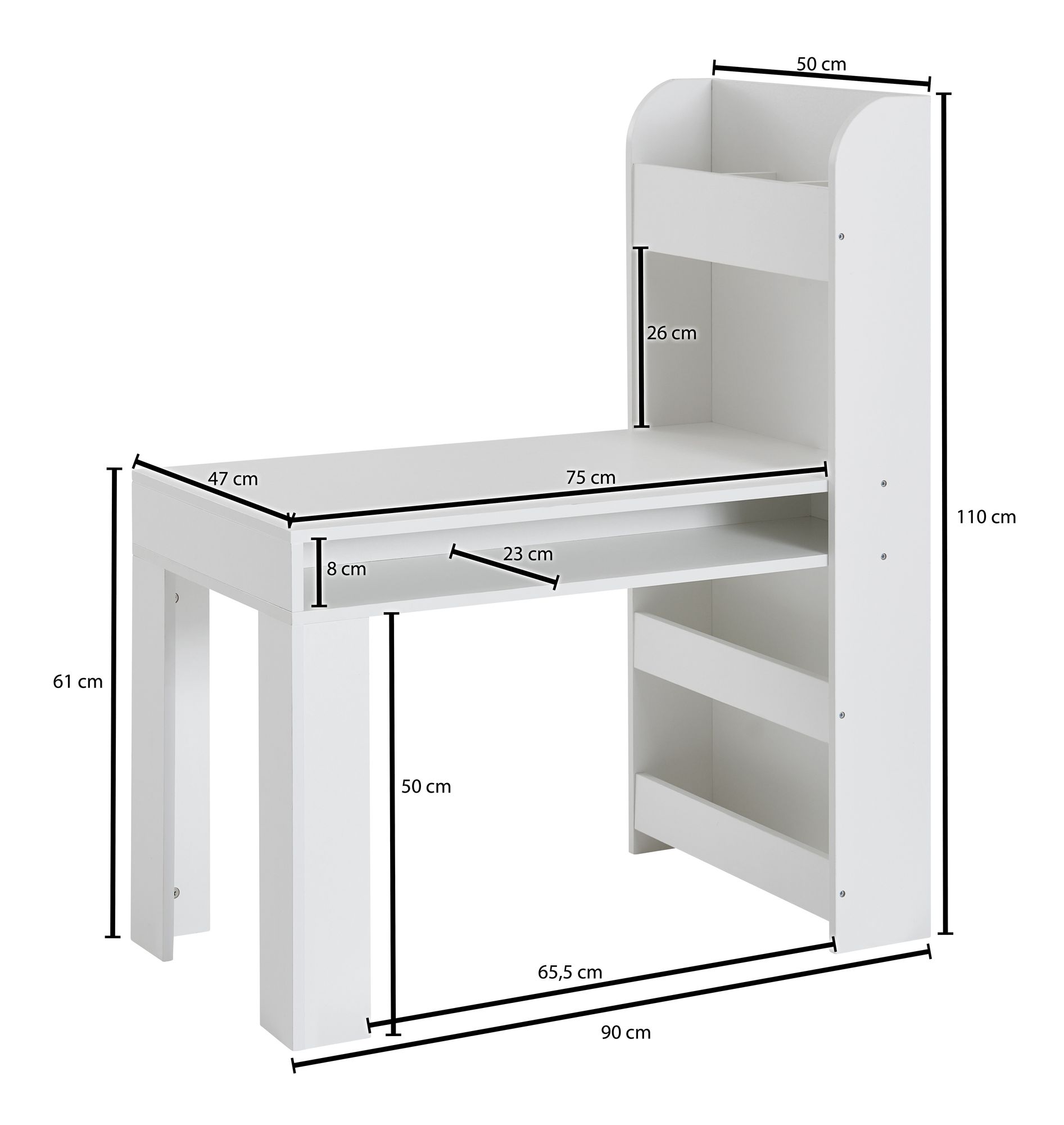 Wohnling Kinderschreibtisch WL6.388 Weiß 90x50x110 cm Maltisch Kinderzimmer mit Regal