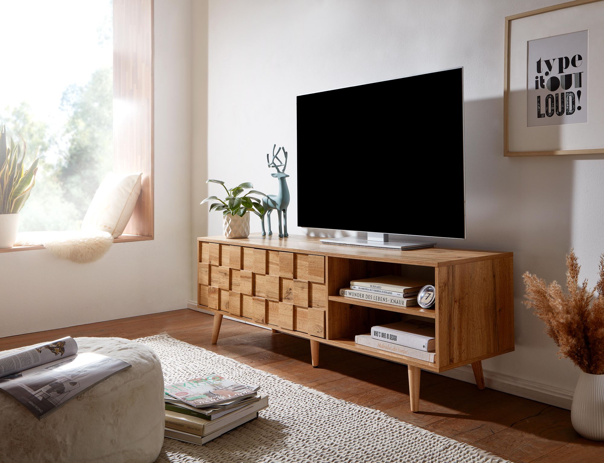 WOHNLING Lowboard Holz Eiche-Dekor 160 cm TV-Kommode mit Türen WL6.578 TV-Schrank Hoch