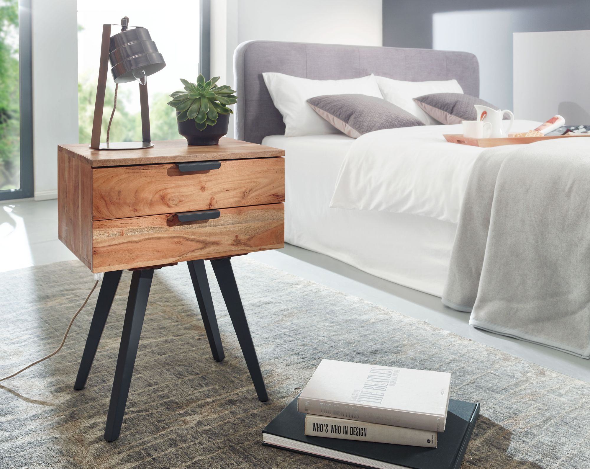 - Nachtkonsole mit Materialmix aus Holz und Metall