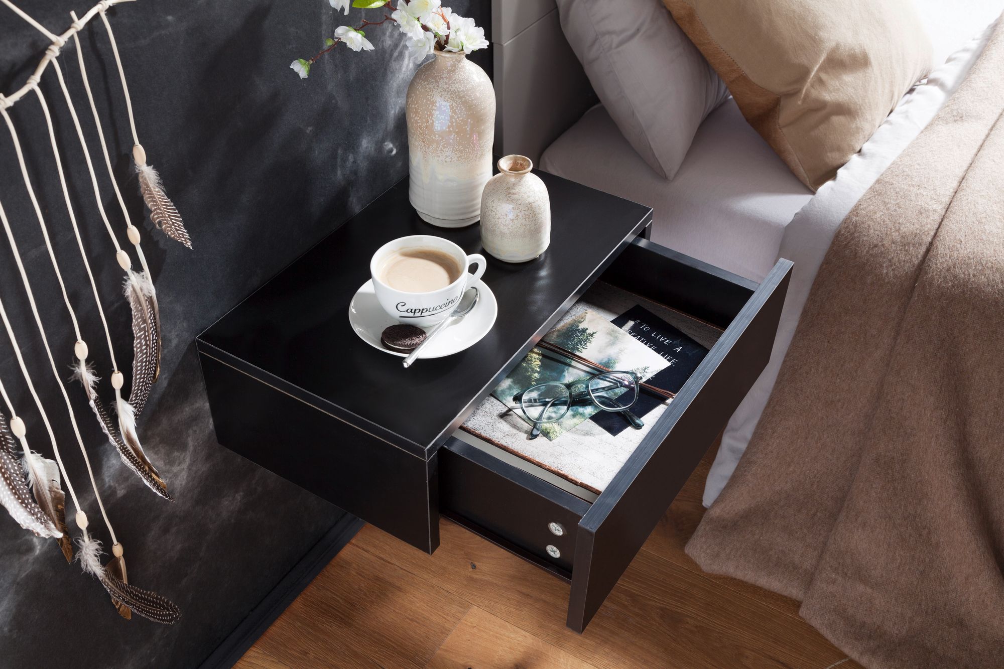 - Kompletter Nachttisch: Schwarz