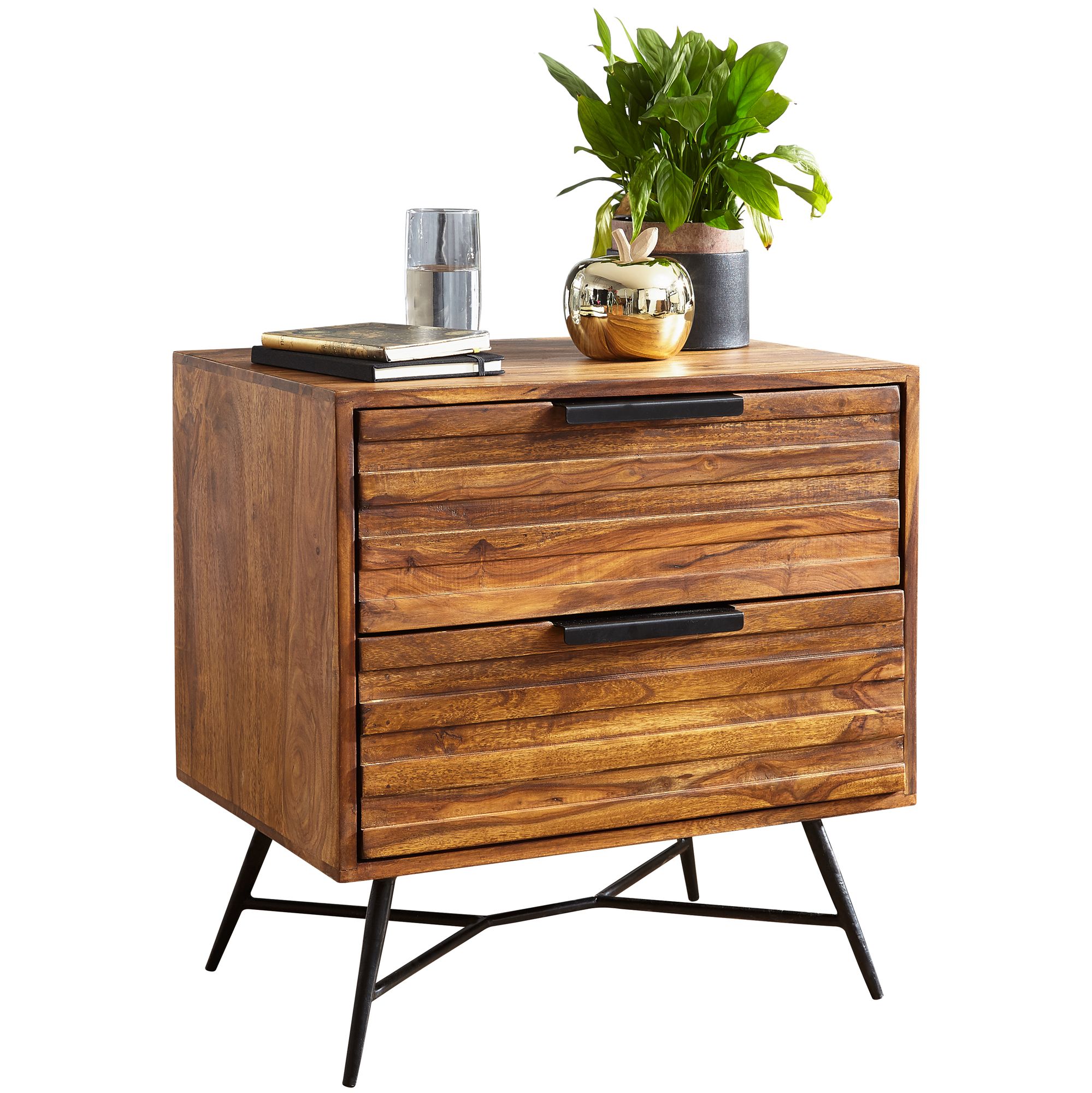 WOHNLING Nachtkonsole NISHAN WL5.585 - 60 x 60 x 40 cm Sheesham Beistelltisch | Design Nachtkommode Boxspringbett | Nachttisch mit Schubladen | Beistellschrank mit Stauraum | Nachttischkästchen hoch