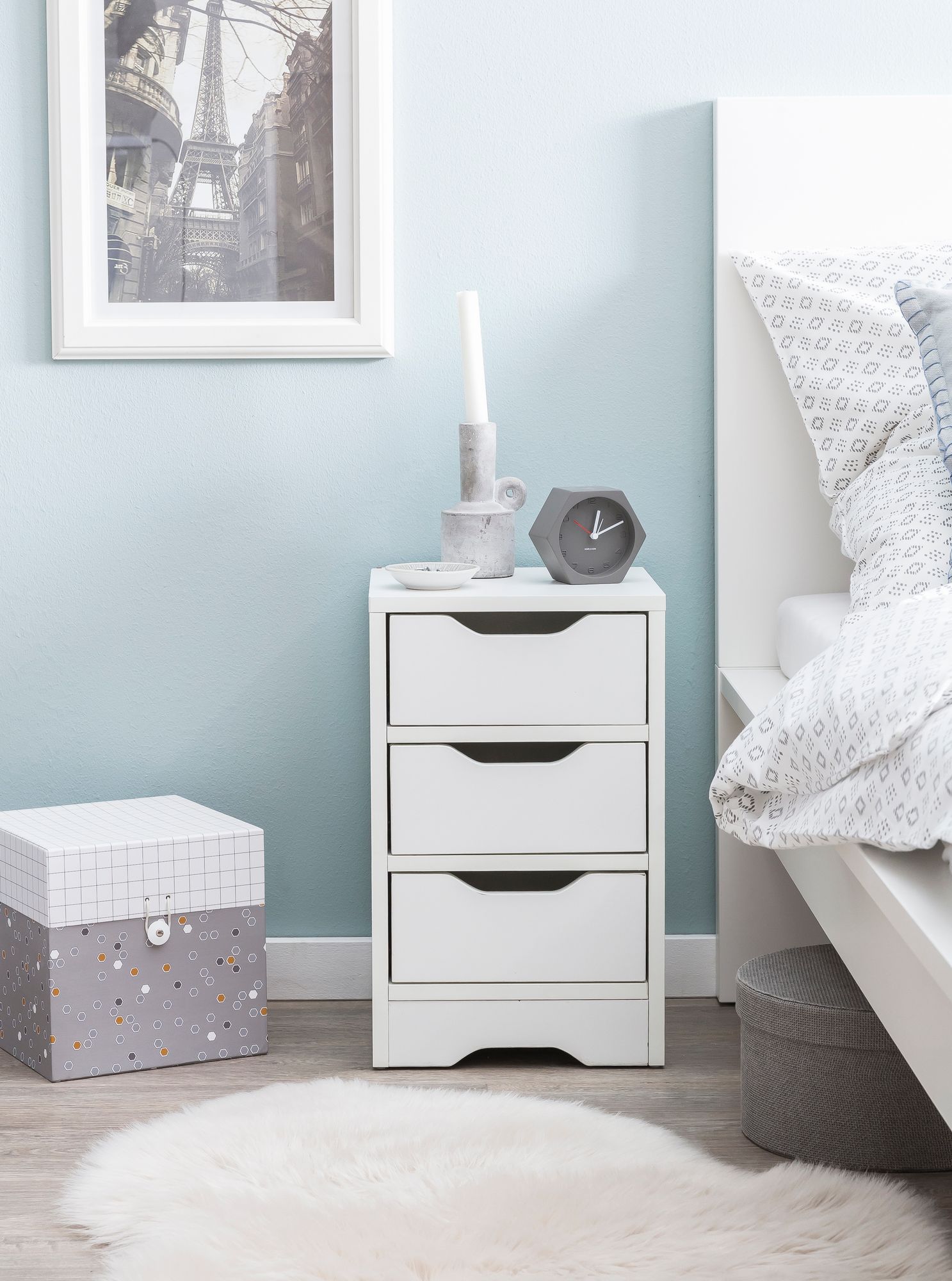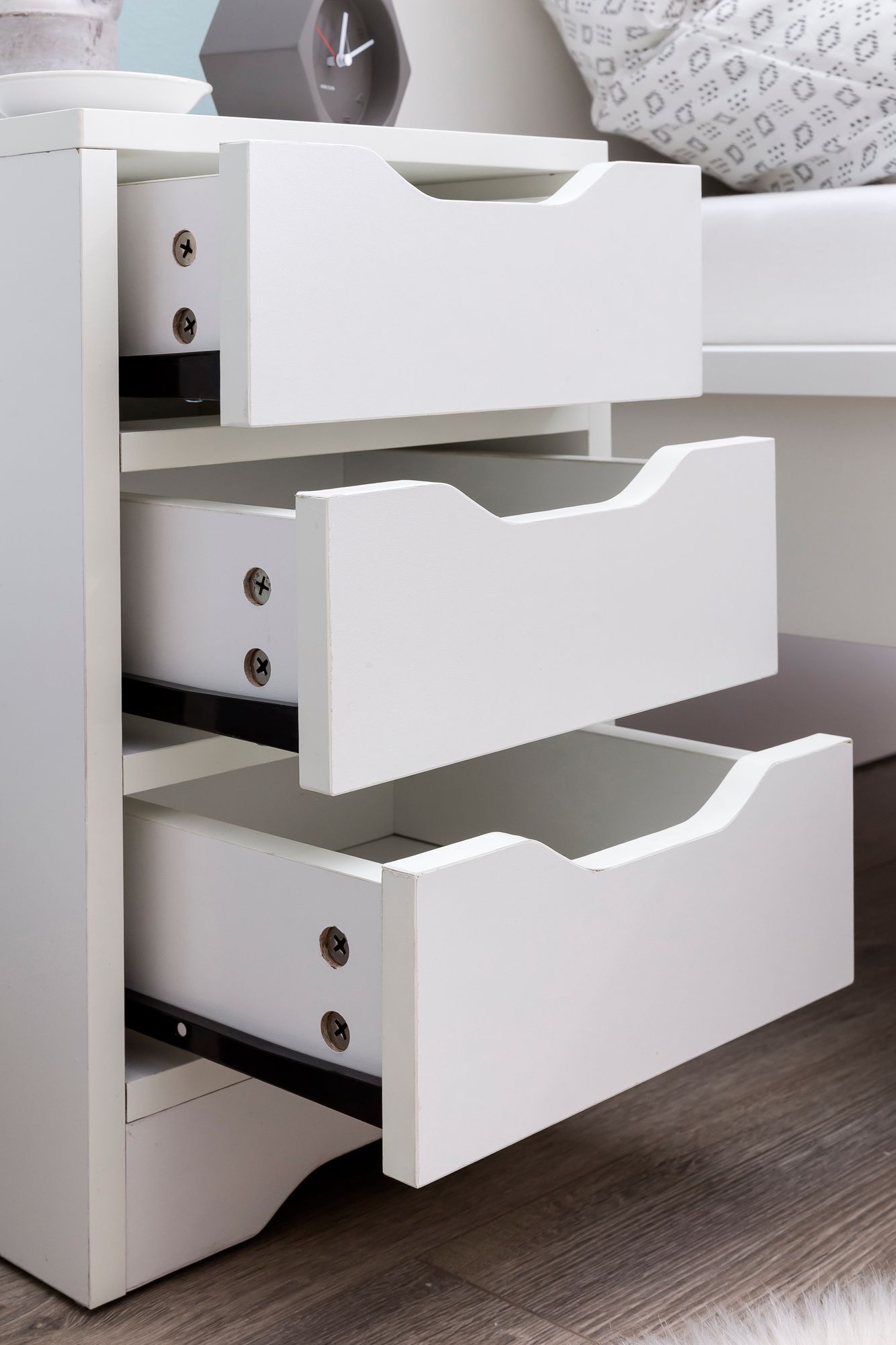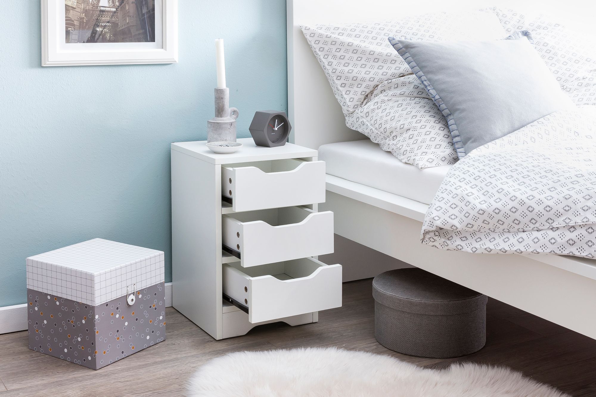 - Nachtkästchen mit drei Schubladen