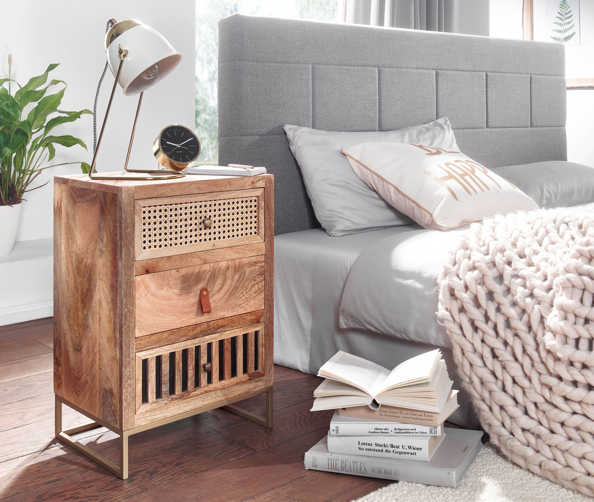 Wohnling Nachttisch WL6.482 Boxspringbett Massivholz 40x60x30 cm Nachtkommode