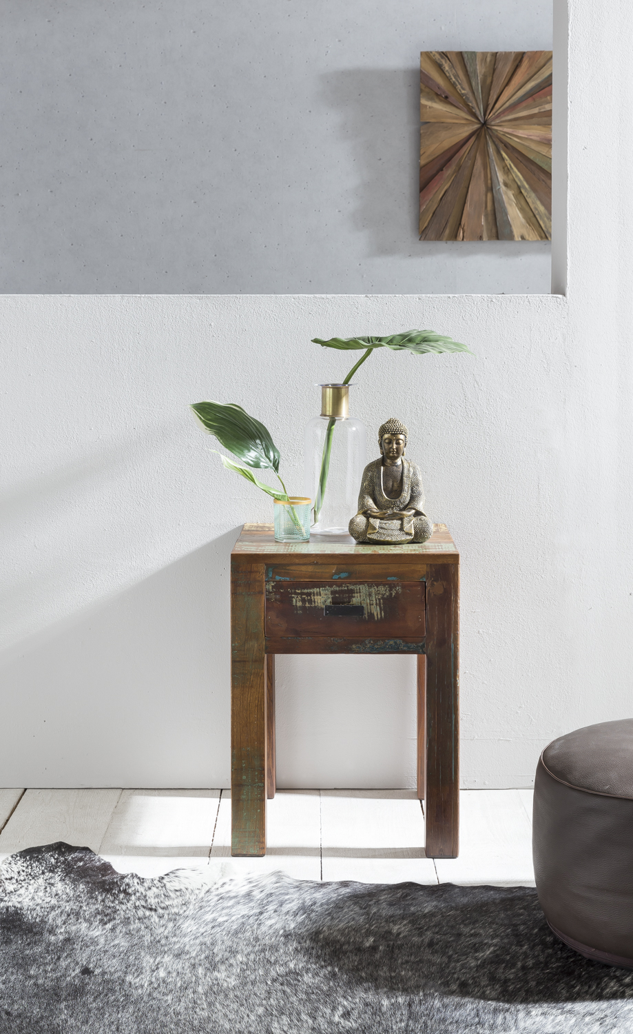 - Ein Nachttisch mit einer Schublade