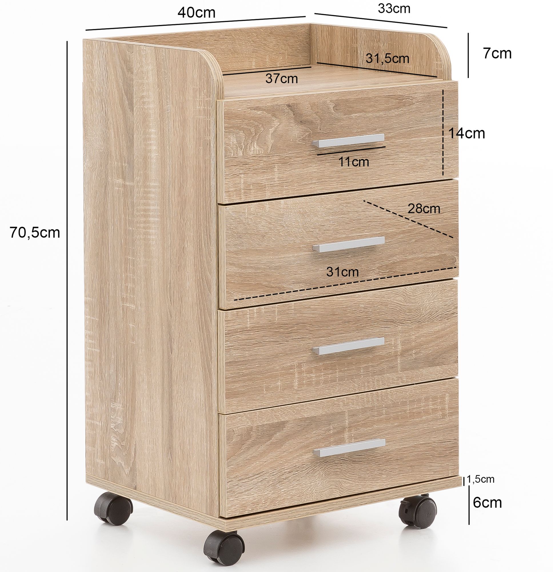 - Innenmaß der Schübe (BxHxT): 31 x 14 x 28 cm