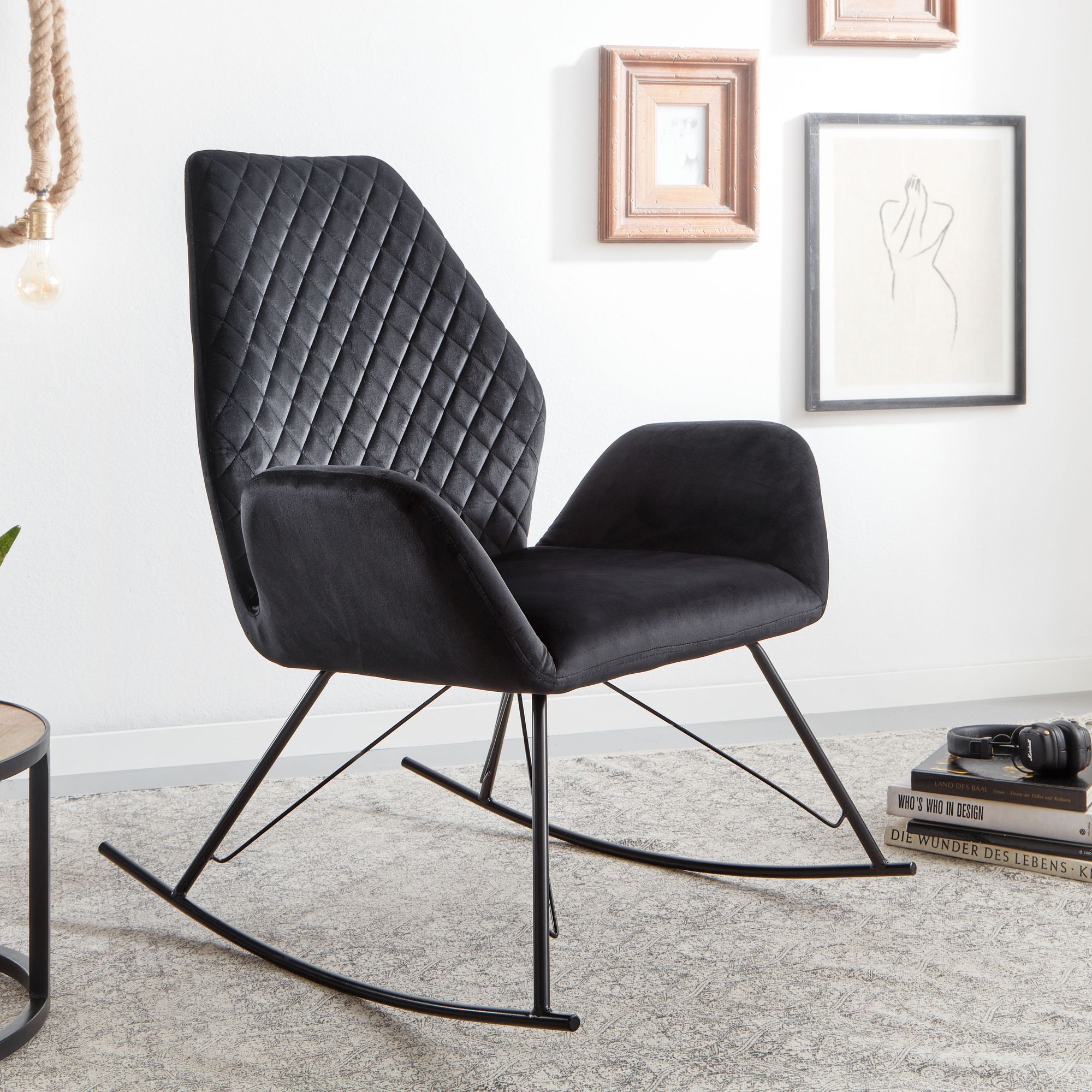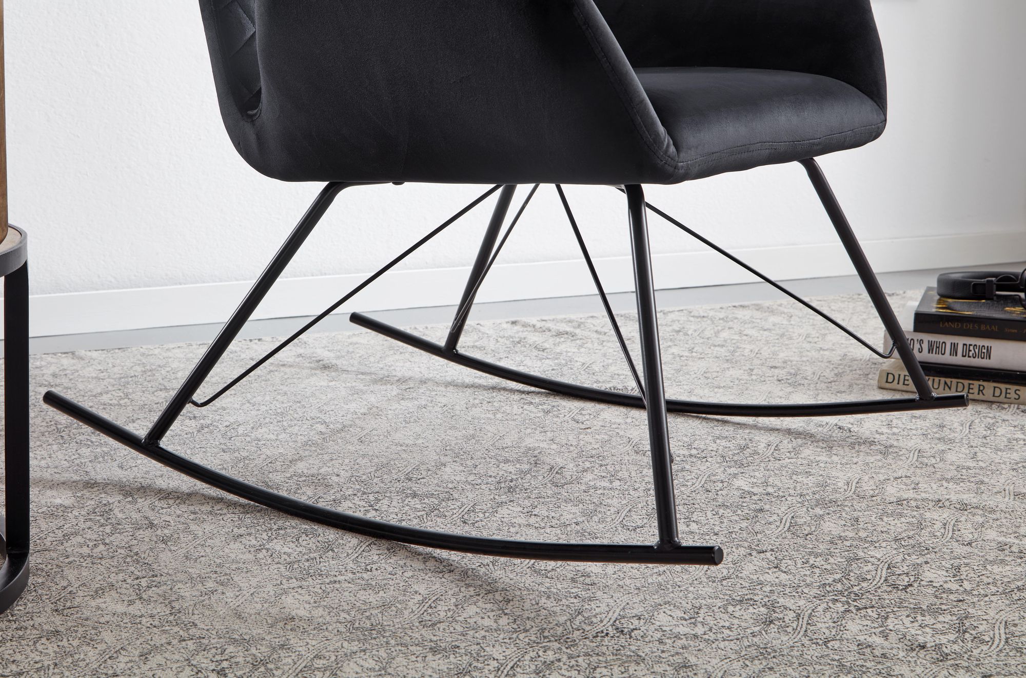 WOHNLING Schaukelstuhl Schwarz 73x94x84 cm Sessel WL6.440 Relaxsessel Samt / Metall
