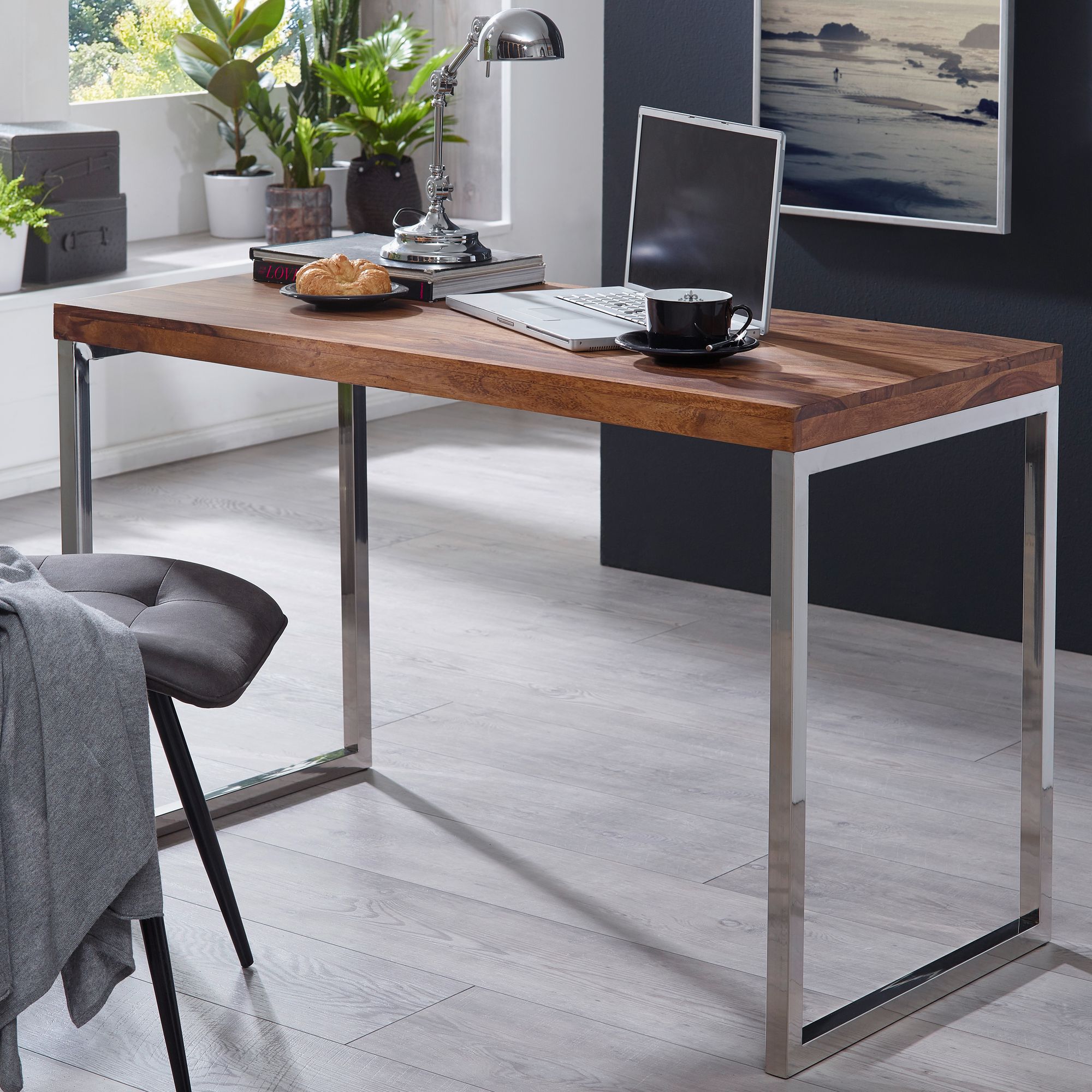 Produktinformationen "WOHNLING Schreibtisch GUNA Massivholz Sheesham Computertisch 120 x 60 cm"