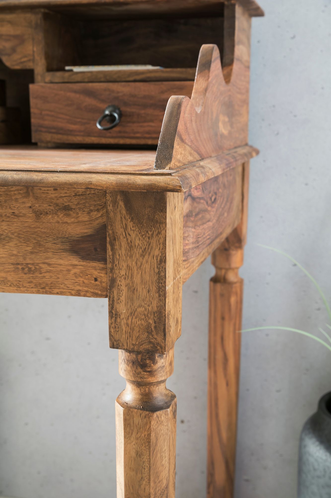WOHNLING Schreibtisch KADA Massivholz Sheesham | Sekretär 115 x 100 x 60 cm mit 3 Schubladen