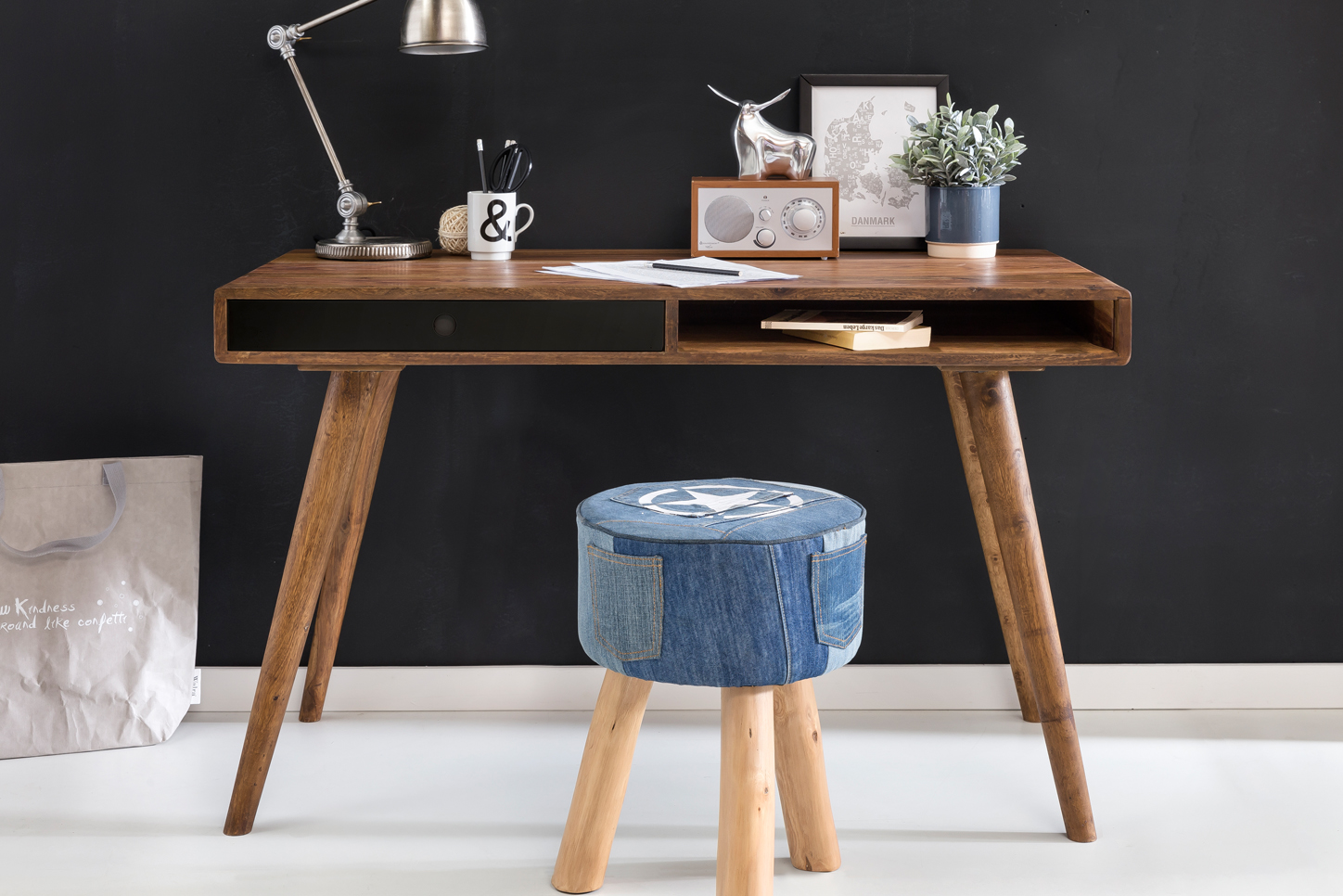 WOHNLING Schreibtisch REPA WL1.961 schwarz 120 x 60 x 75 cm Massiv Holz Laptoptisch Sheesham Natur