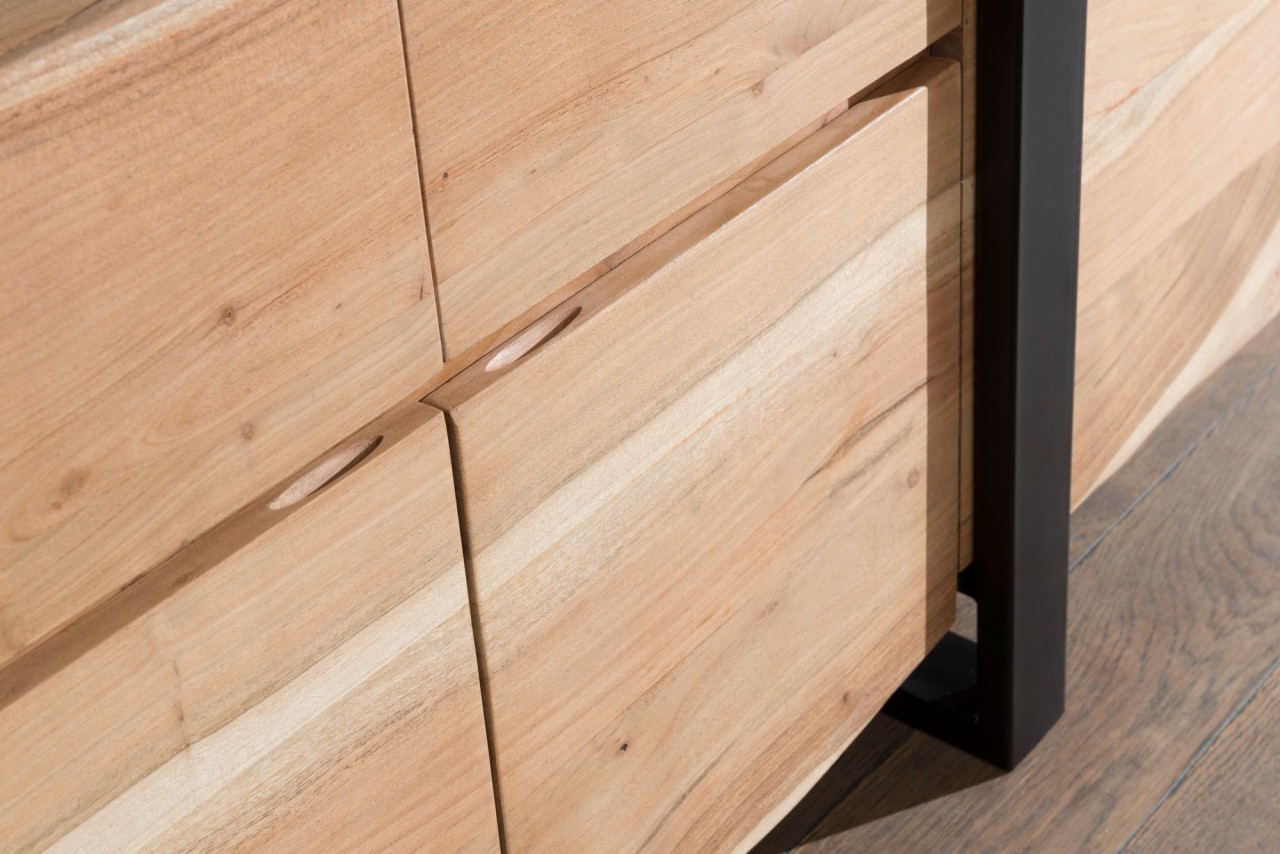 WOHNLING Sideboard GAYA Akazie Kommode Massiv Holz 175x90x44cm | Highboard mit Türen & Schubladen