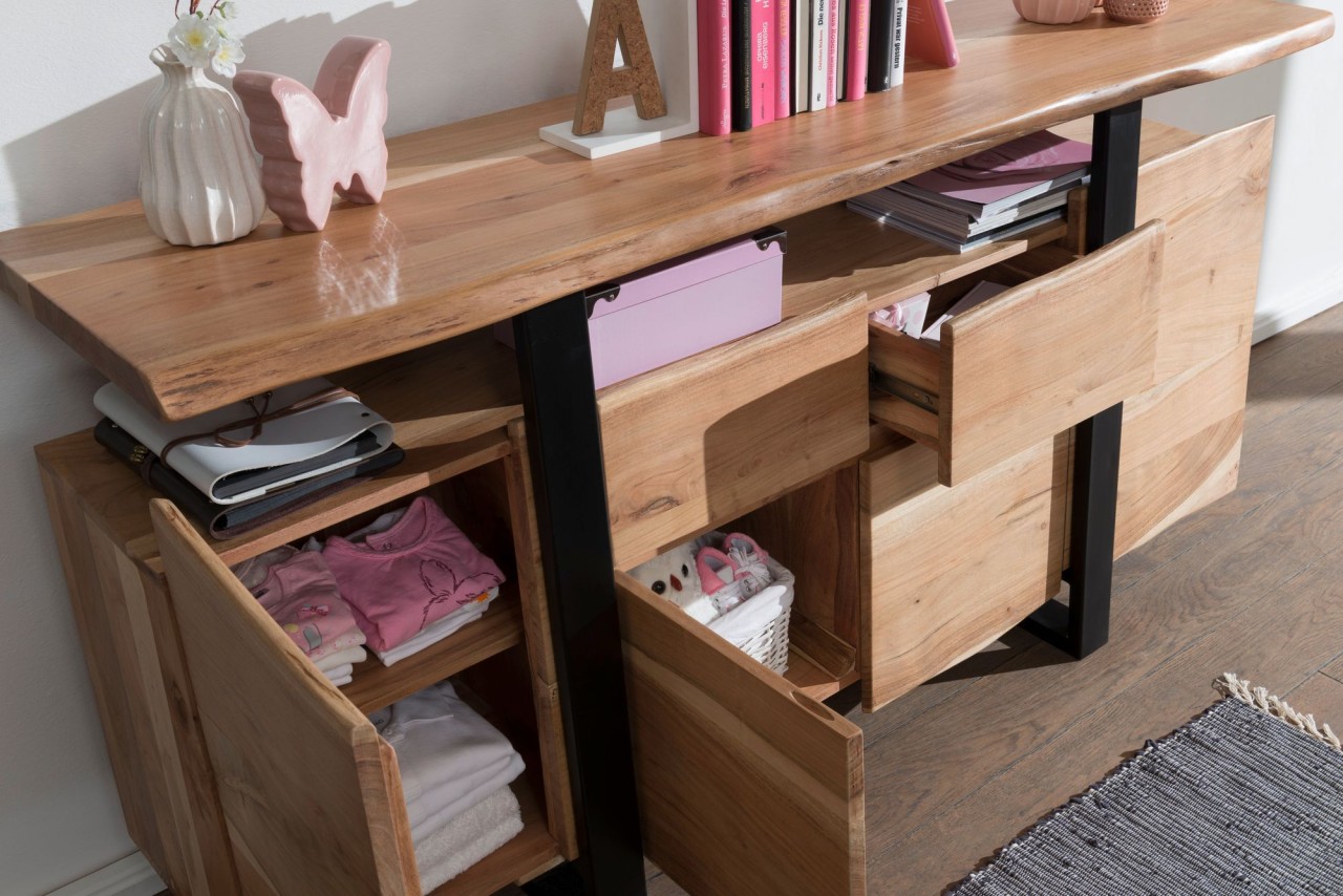 WOHNLING Sideboard GAYA WL5.637 Akazie Kommode Massiv Holz 175x90x44cm | Highboard mit Türen & Schubladen Modern | Massive Design Anrichte | Kleiner Massivholz Schrank Landhaus | Holzkommode Baumkante