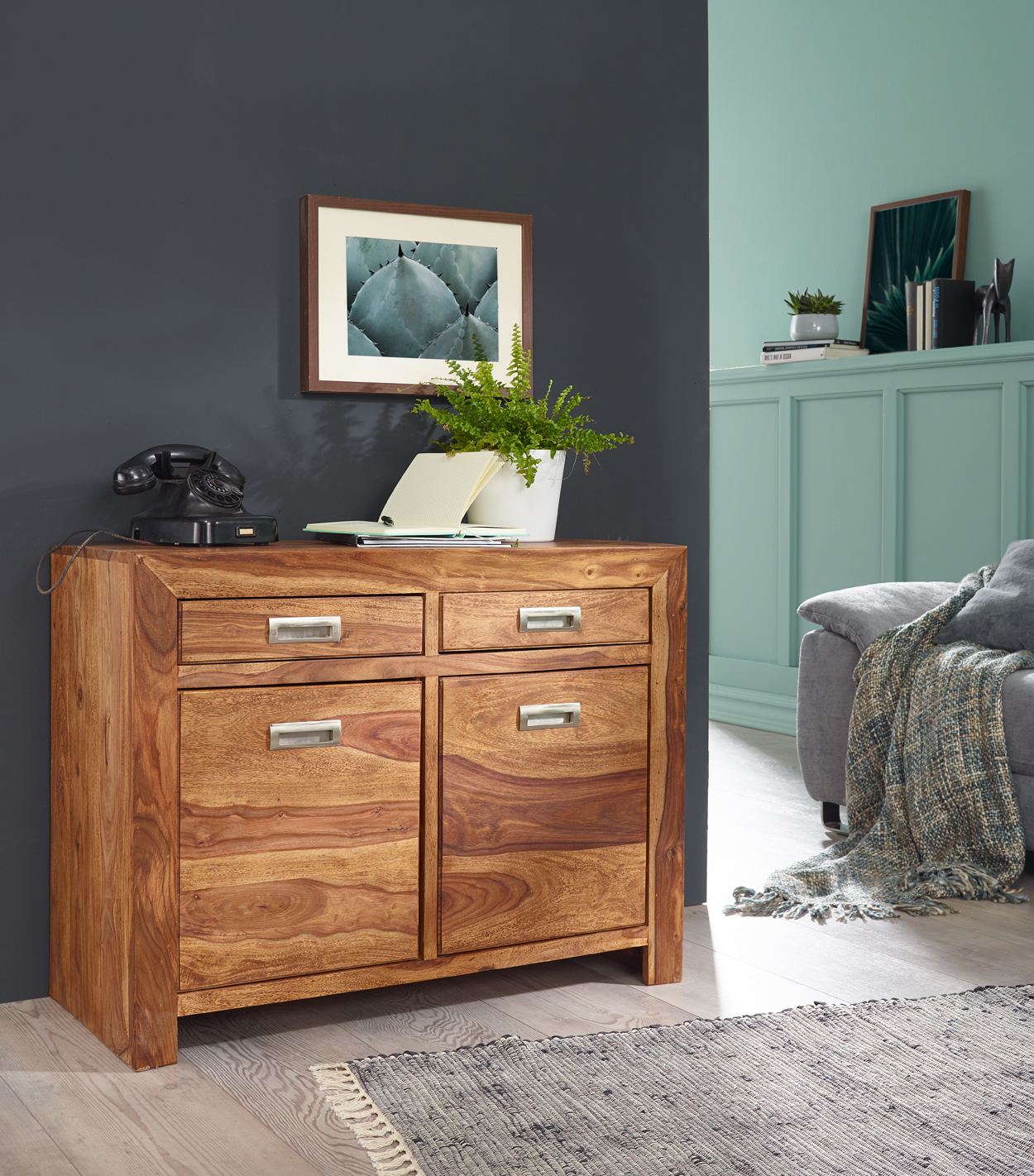 WOHNLING Sideboard MUMBAI WL1.316 Massivholz Sheesham Kommode 90 cm 2 Schubladen 2 Türen
