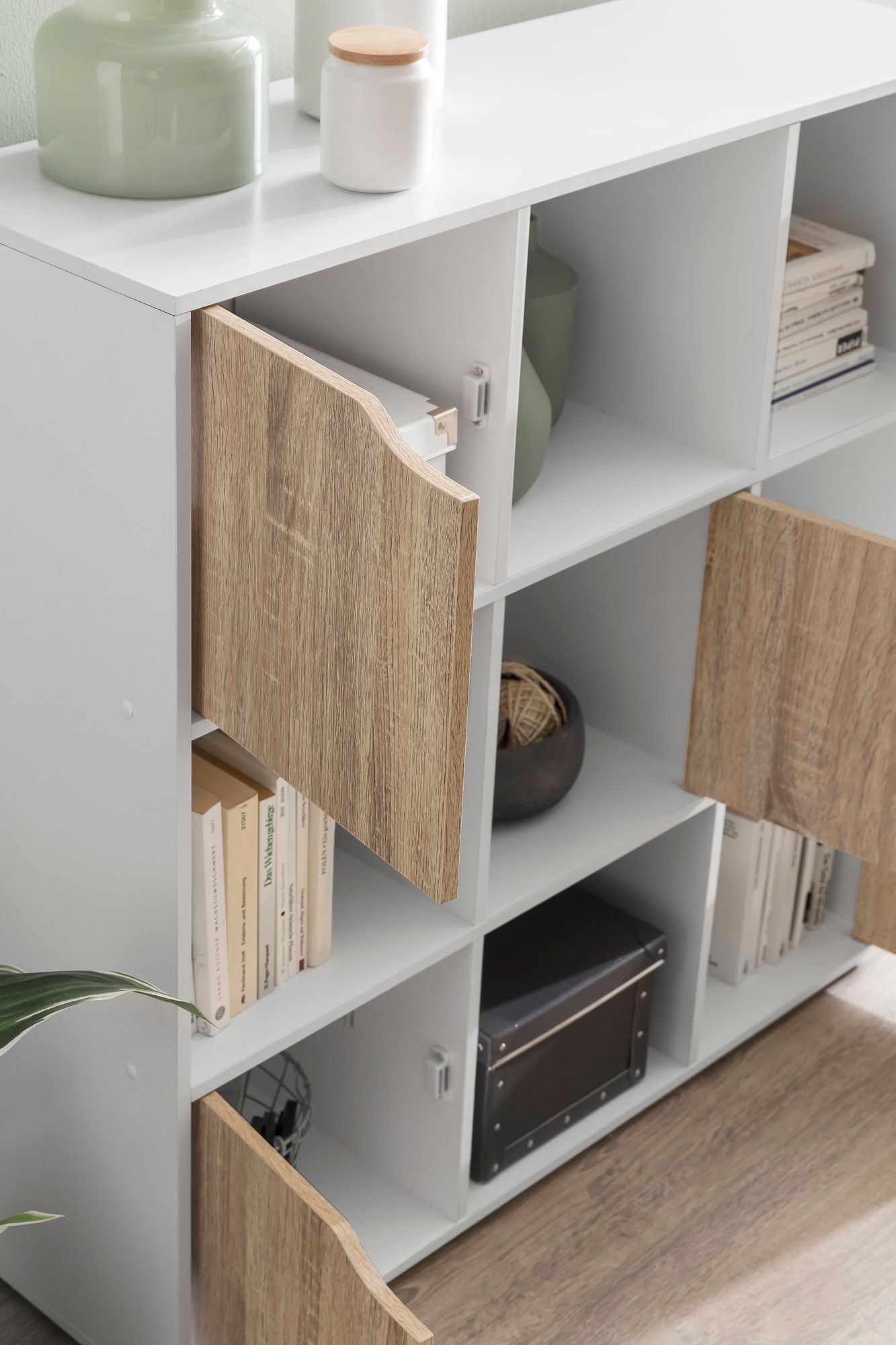 WOHNLING Sideboard SAMO WL5.526 - 89 x 91 x 29 cm Bücherregal mit 9 Fächern Sonoma | Standregal mit 5 Türen | Modernes Würfelregal Raumteiler | Flurschrank offen | Cuberegal Kommode Wohnregal