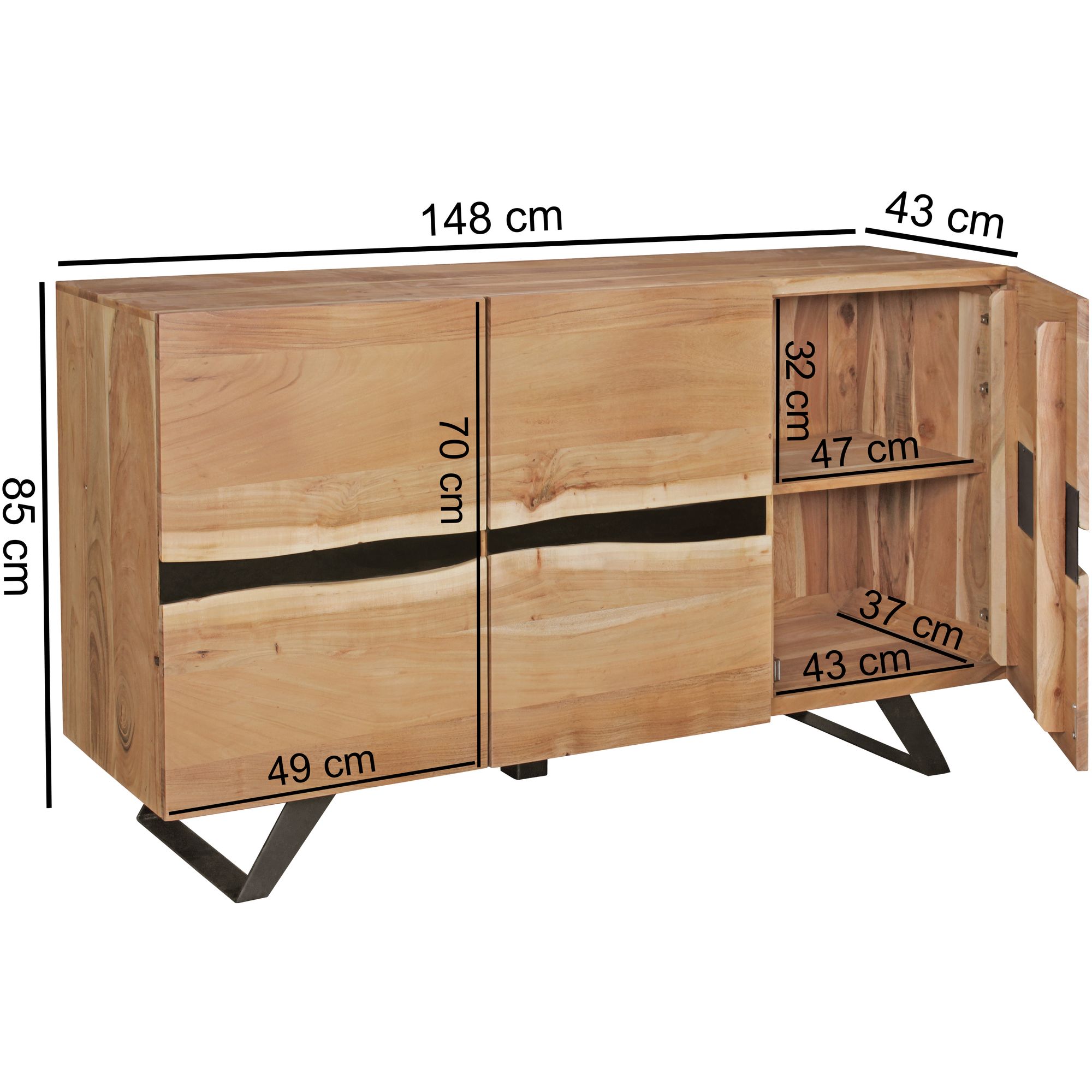 Produktinformationen "WOHNLING Sideboard SATARA Massiv-Holz Akazie Natur Baumkante Anrichte"