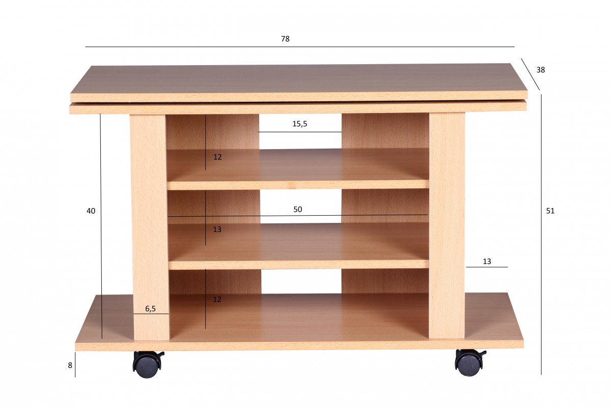 Produktinformationen "WOHNLING TV HiFi Bank LUCA Buche Fernsehtisch drehbar & rollbar 75 x 38 x 51 cm"