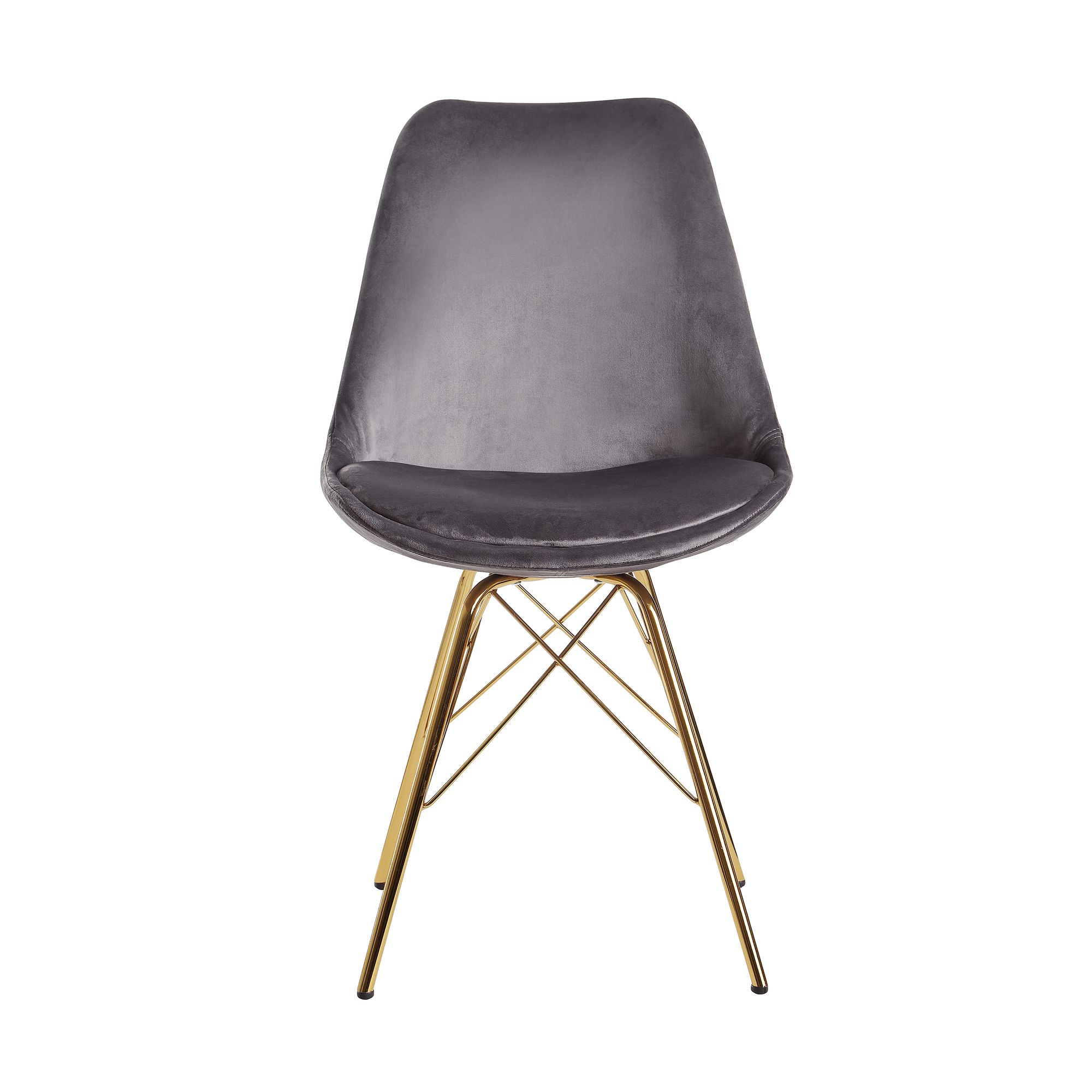 Wohnling Esszimmerstuhl 2er Set Samt Grau Küchenstuhl mit goldenen Beinen