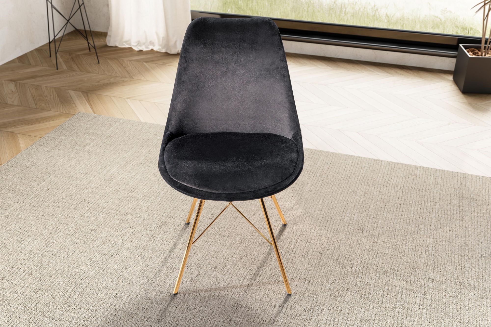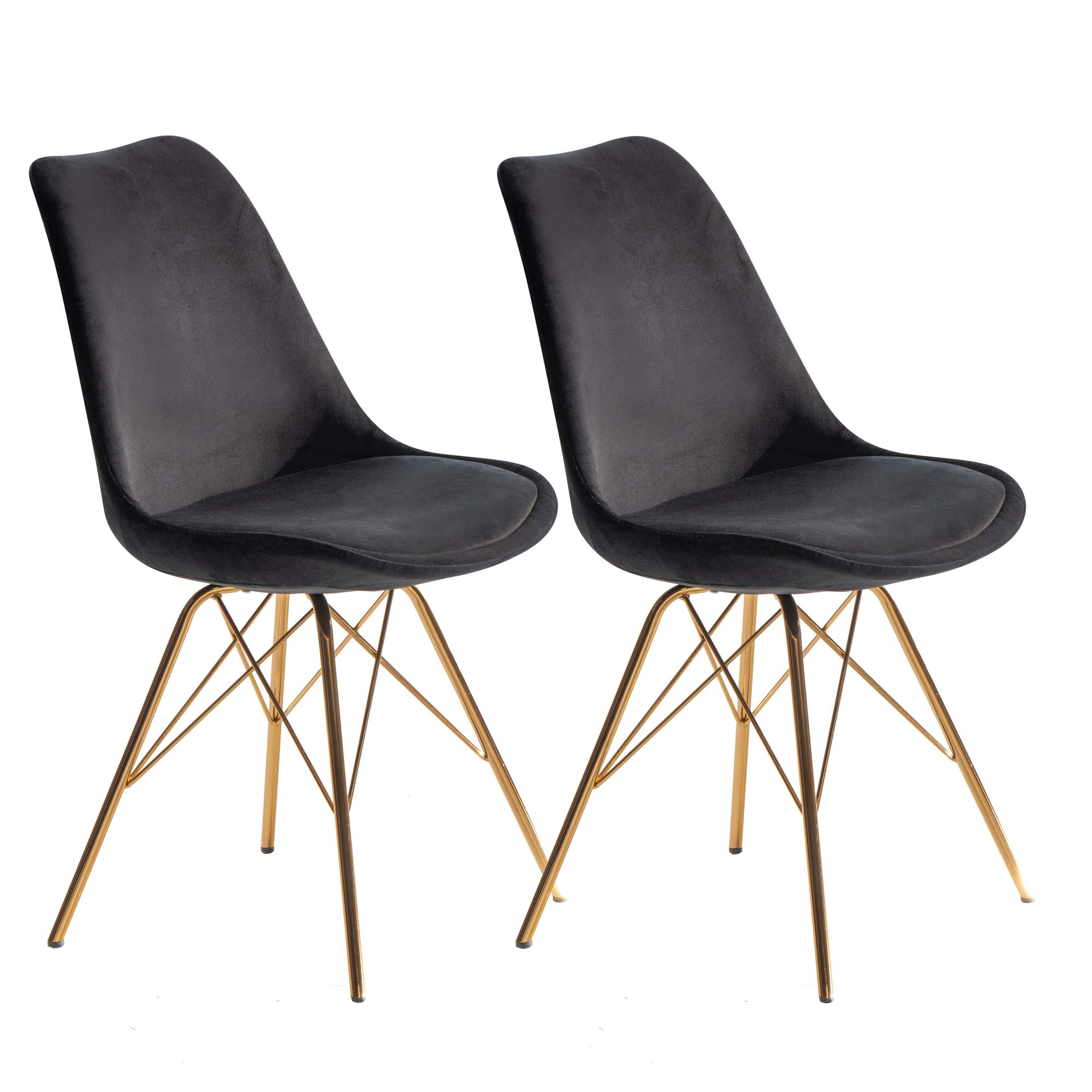 Wohnling Esszimmerstuhl 2er Set Samt Schwarz Küchenstuhl mit goldenen Beinen