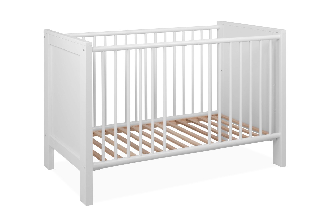 Das Babybett Landwood im Dekor Weiß bietet eine sichere und stilvolle Schlaflösung für Ihr Baby. Mit einer Liegefläche von 60 x 120 cm und einem 3-fach höhenverstellbaren Lattenrost passt sich das Bett den Bedürfnissen Ihres wachsenden Kindes an. Die 3 herausnehmbaren Gitterstangen und die ABS-Kante Melaminbeschichtung bieten zusätzliche Sicherheit und Stabilität. Hergestellt in Europa, überzeugt das Babybett durch hohe Materialqualität und Verarbeitung.