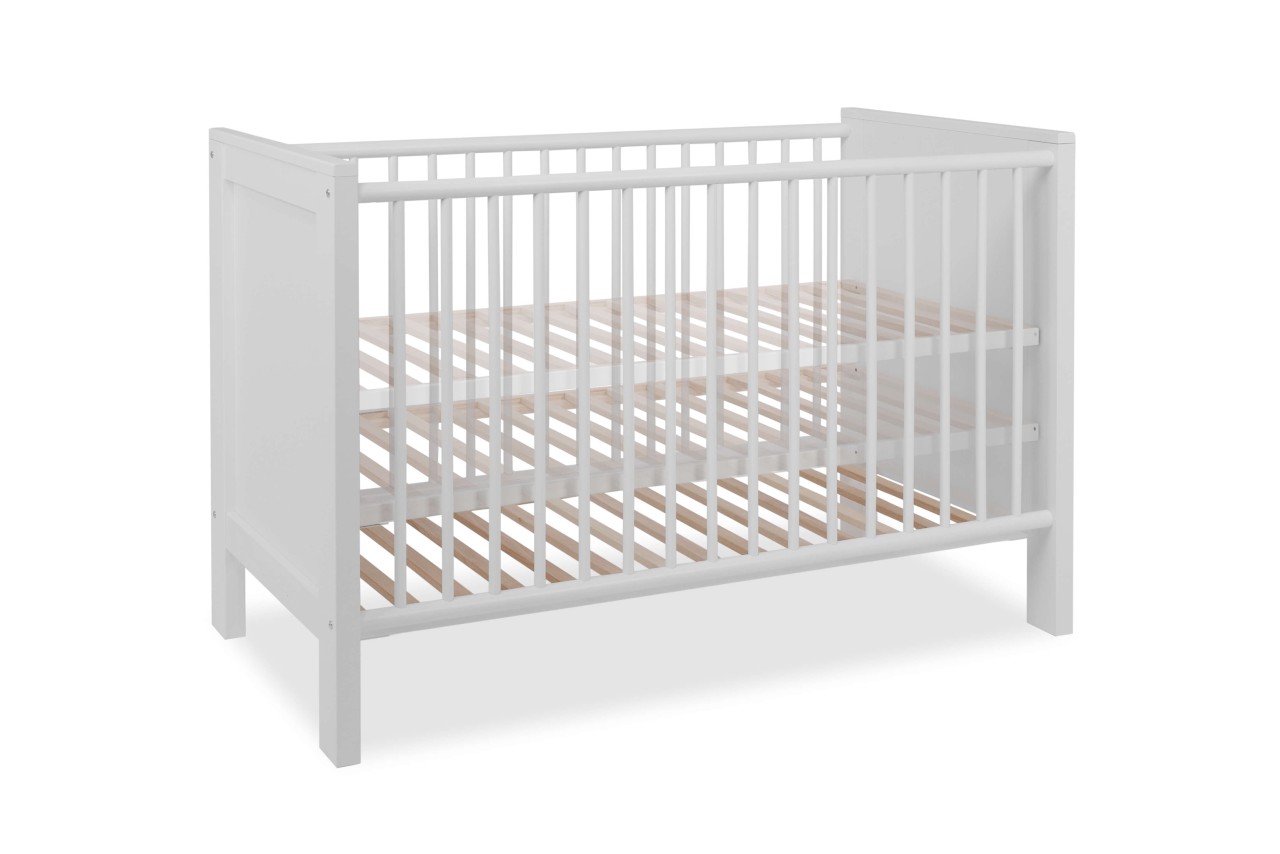 Das Babybett Landwood im Dekor Weiß bietet eine sichere und stilvolle Schlaflösung für Ihr Baby. Mit einer Liegefläche von 70 x 140 cm und einem 3-fach höhenverstellbaren Lattenrost passt sich das Bett den Bedürfnissen Ihres wachsenden Kindes an. Die 3 herausnehmbaren Gitterstangen und die ABS-Kante Melaminbeschichtung bieten zusätzliche Sicherheit und Stabilität. Hergestellt in Europa, überzeugt das Babybett durch hohe Materialqualität und Verarbeitung.