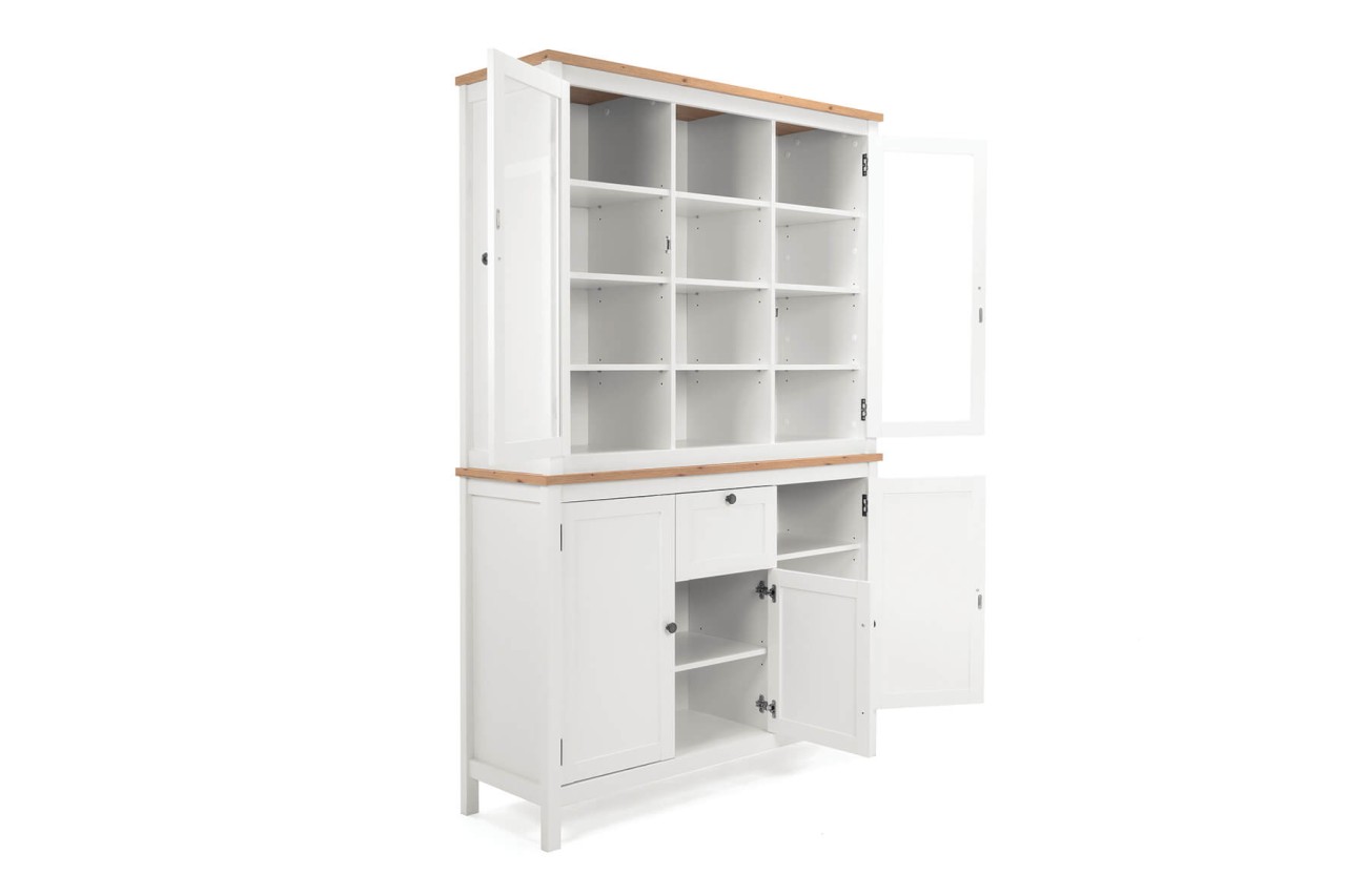 Gerne möchten wir dir den Buffetaufsatz Bergen aus dem Hause Finori vorstellen. Dieser Buffet-Aufsatz im modernen Landhausstil bietet dir eine tolle Vitrinenoptik für deinen Wohn- und Essbereich. Der Aufsatz ist besonders strapazierfähig und eignet sich hervorragend als Blickfang in deinem zu Hause. Mit den Maßen 120 x 100 x 40 cm und der ländlichen Optik, lässt sich das Produkt hervorragend mit anderen Produkten der Bergen-Reihe kombinieren. Es handelt sich um pflegeleichte MDF Holzplatten (foliert), welche mit einem feuchten Tuch einfach zu reinigen sind.