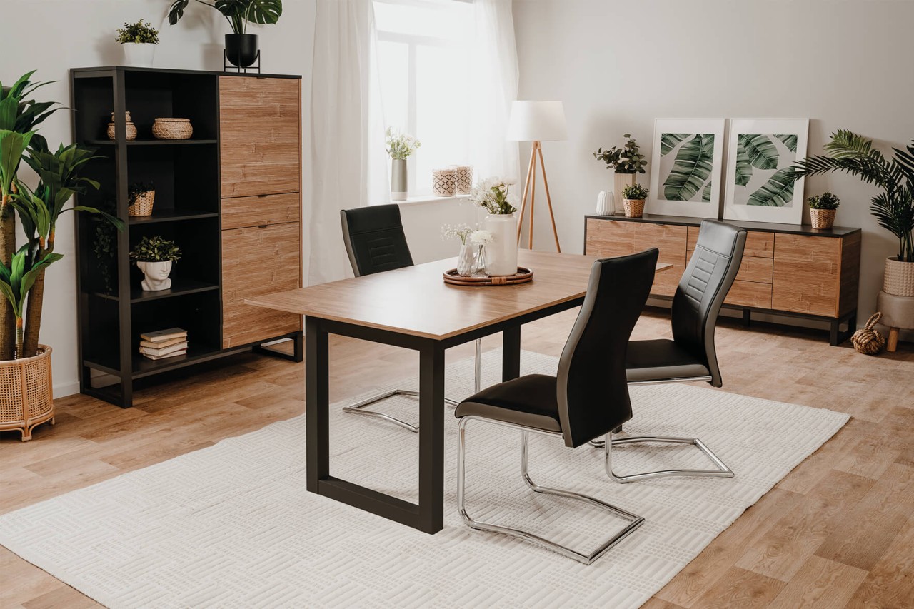 finori Esstisch Austin 160-200 cm in Anthrazit / Bambus ausziehbarer Tisch